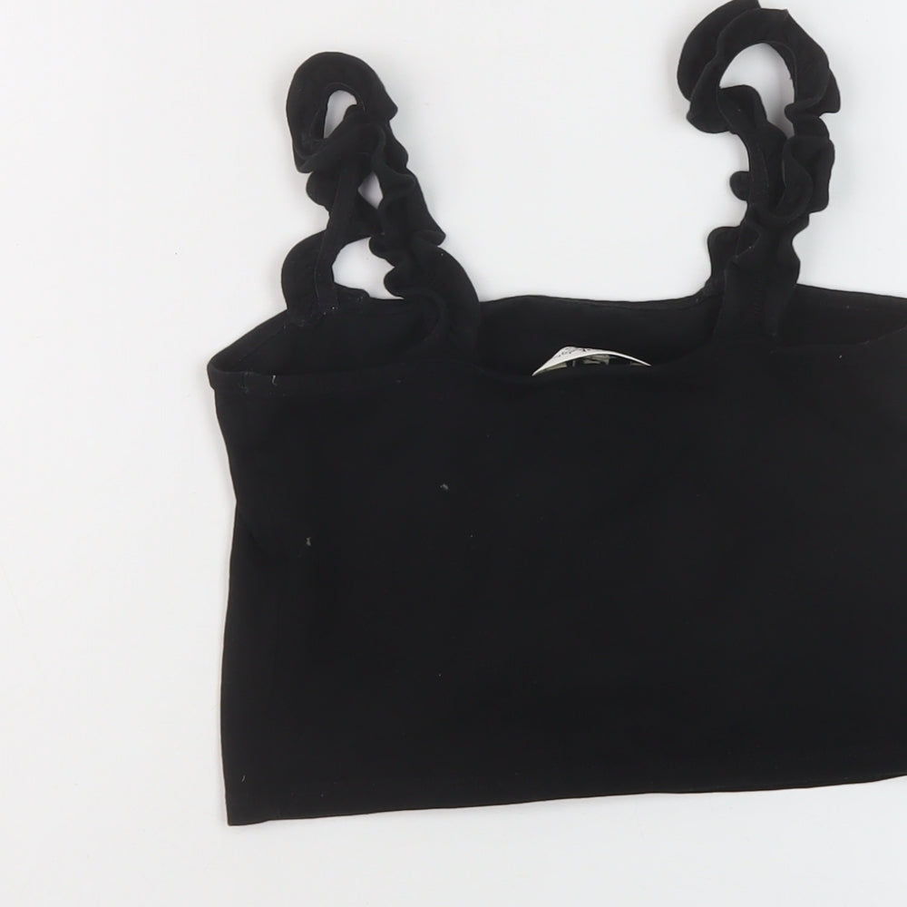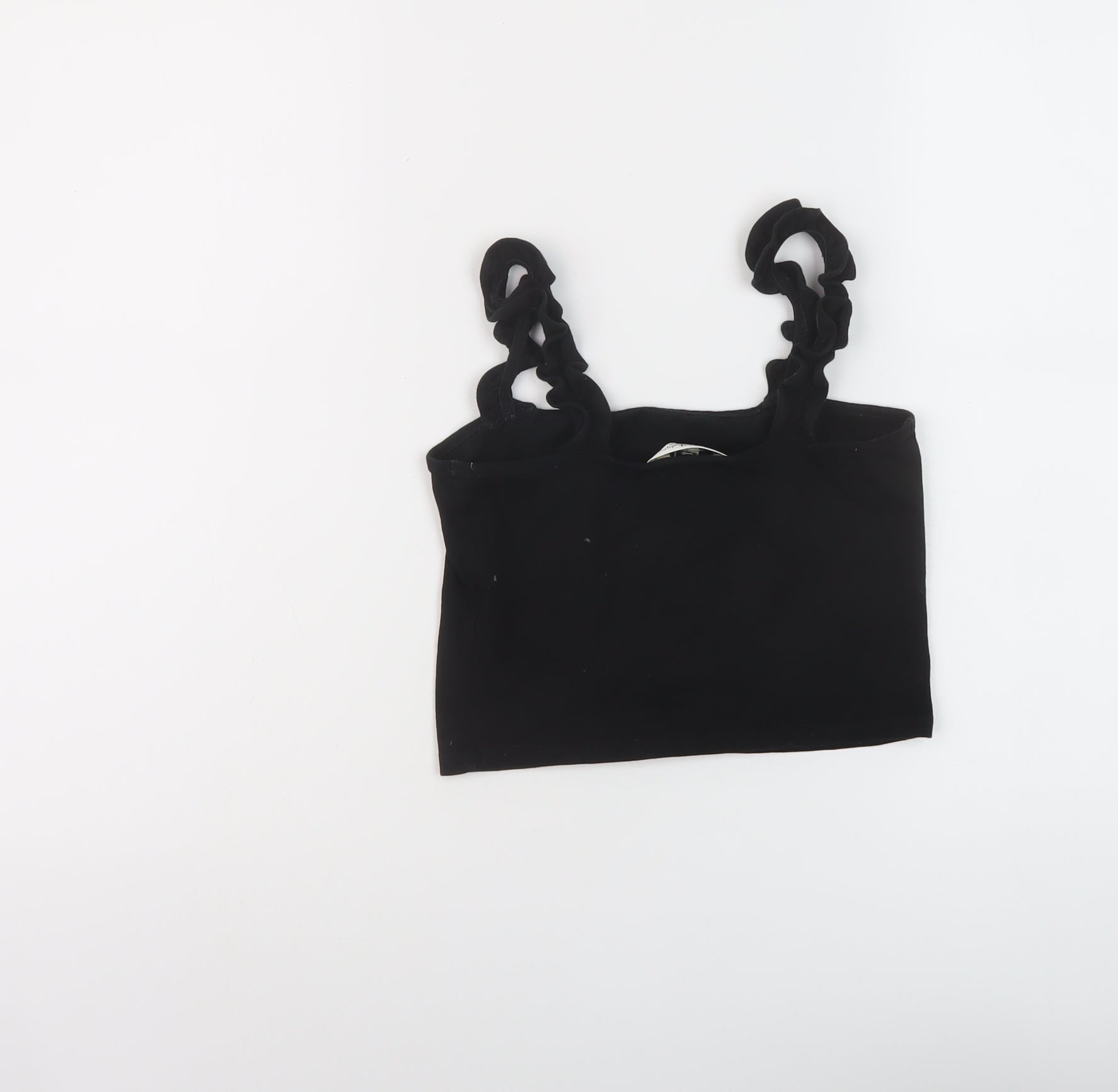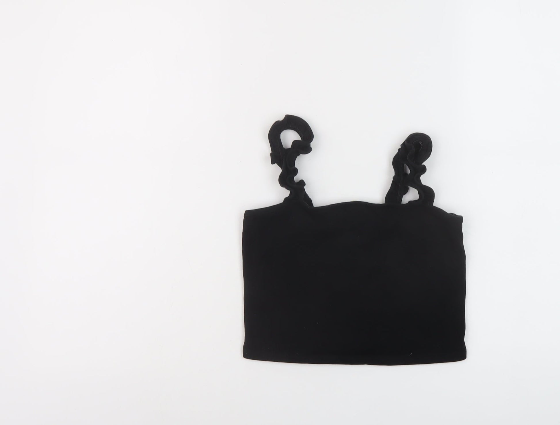 Miss Selfridge Womens Black Cotton Cropped T-Shirt Size 10 Square Neck