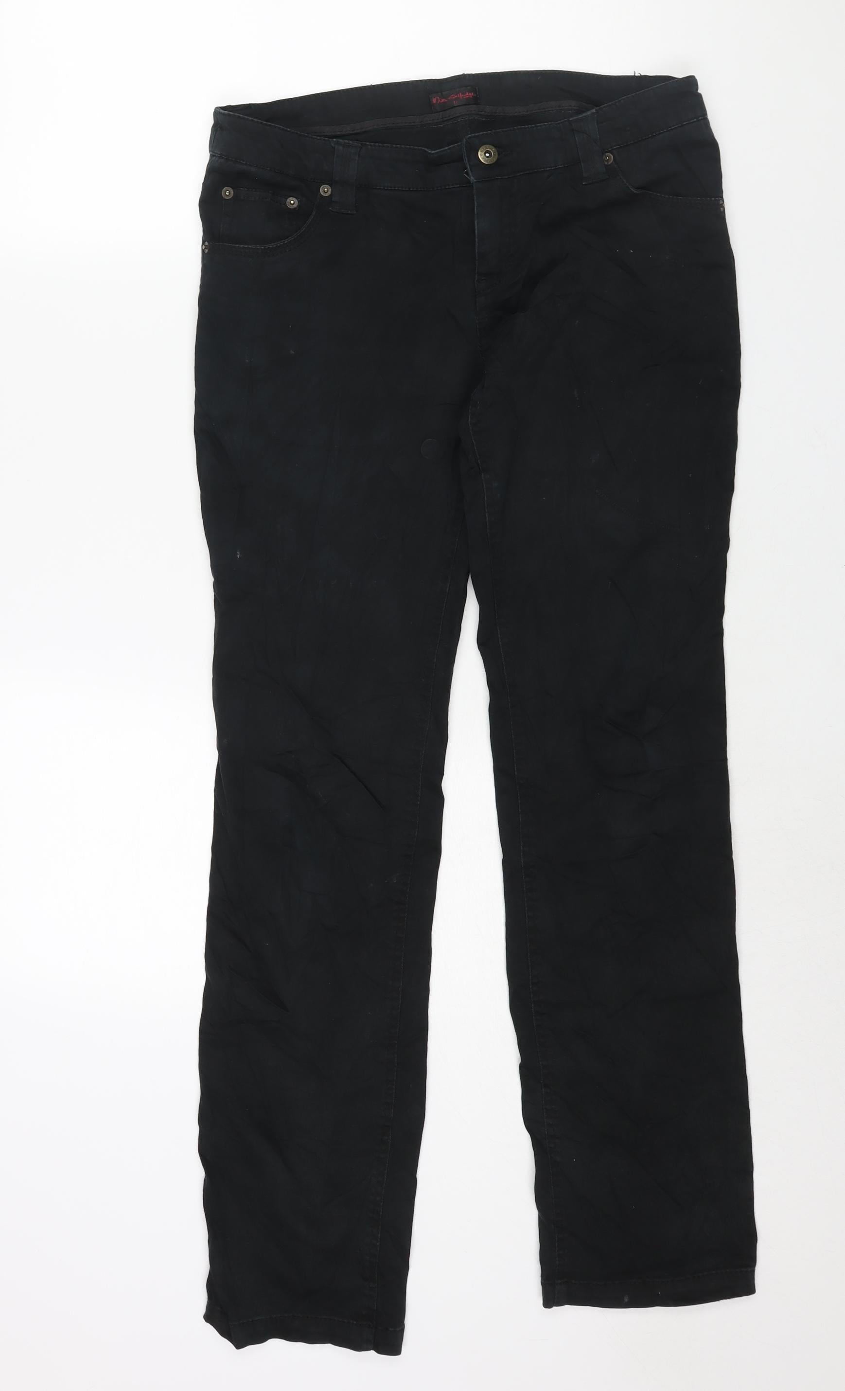 Miss Selfridge Womens Black Cotton Straight Jeans Size 12 L32 in Regular Zip