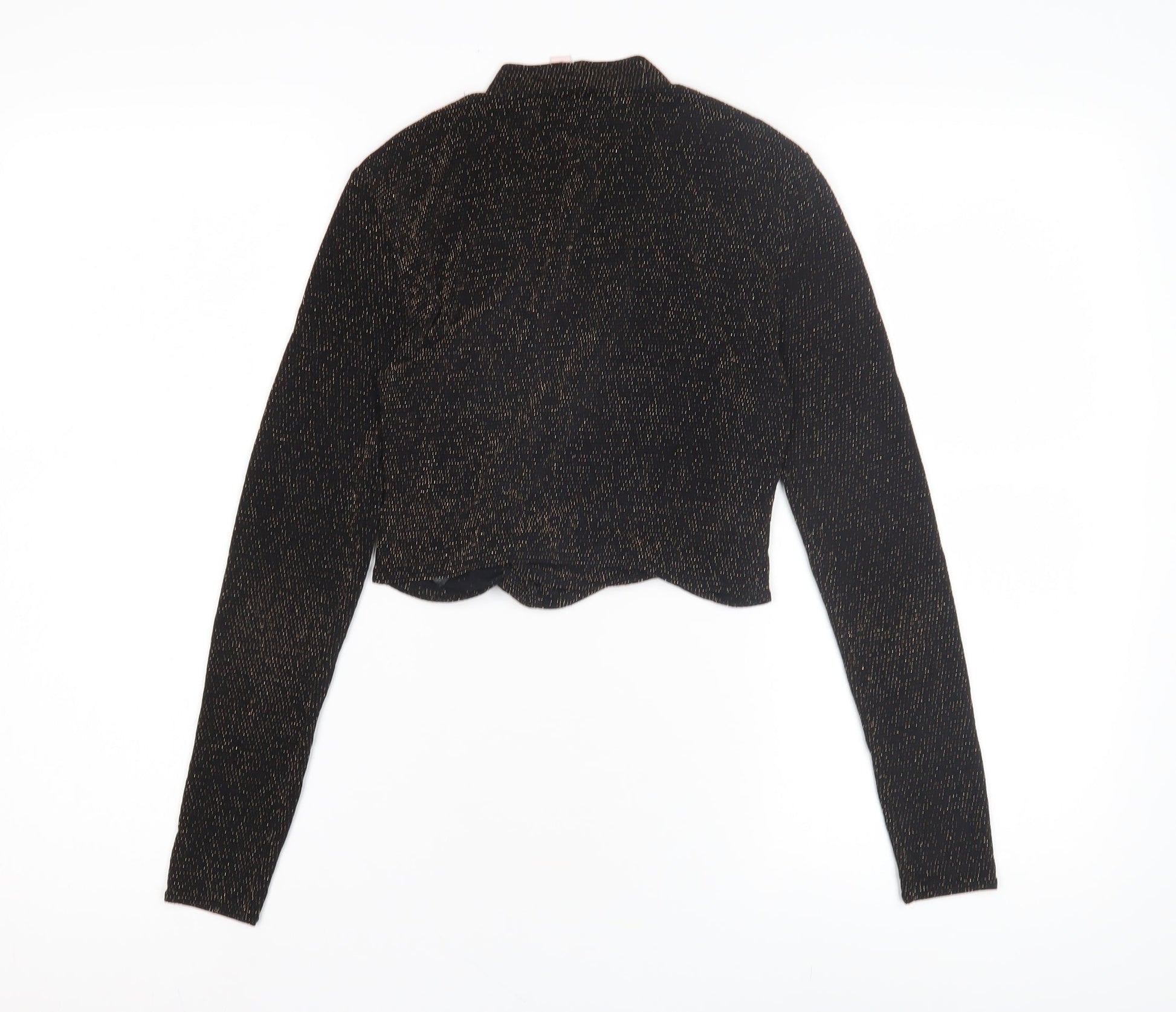 Miss Selfridge Women's Black Cropped Metallic Top Size 10