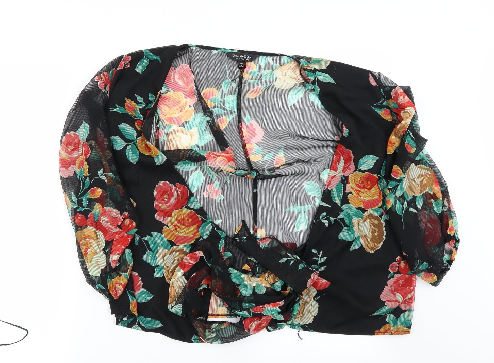 Miss Selfridge Womens Black Floral Basic Blouse Size 6