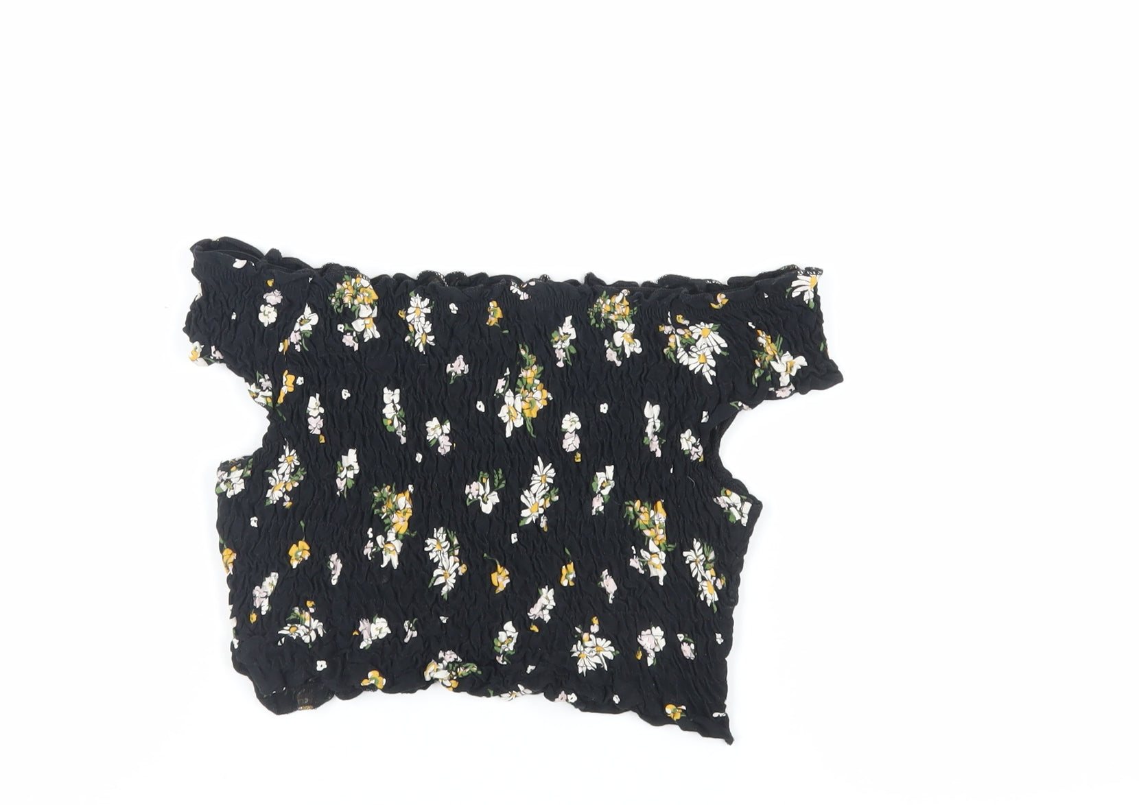 Miss Selfridge Womens Black Floral Cotton Cropped Tank Size 8 Off the Shoulder - Shirred