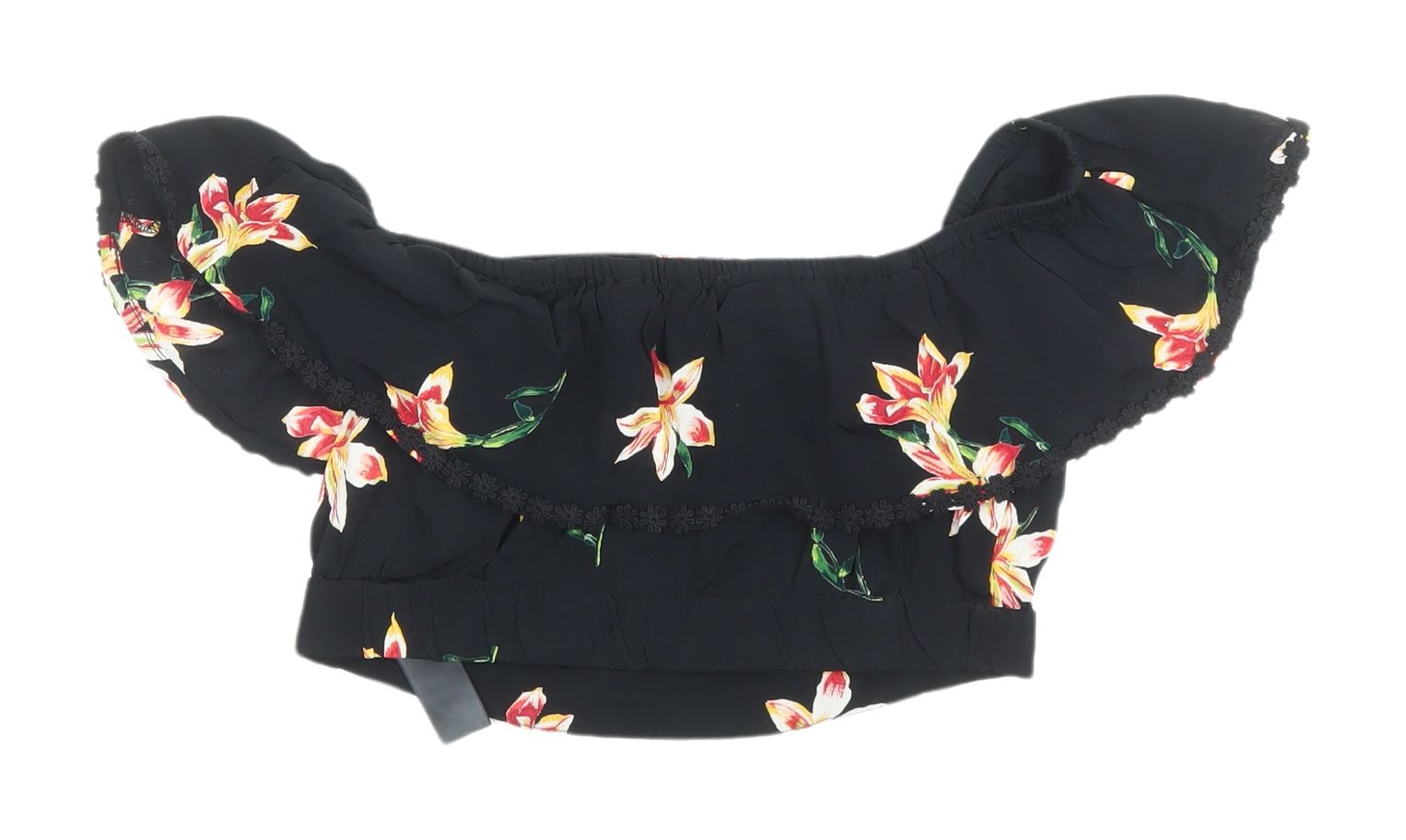 Miss Selfridge Women's Black Floral Cropped Top UK 6