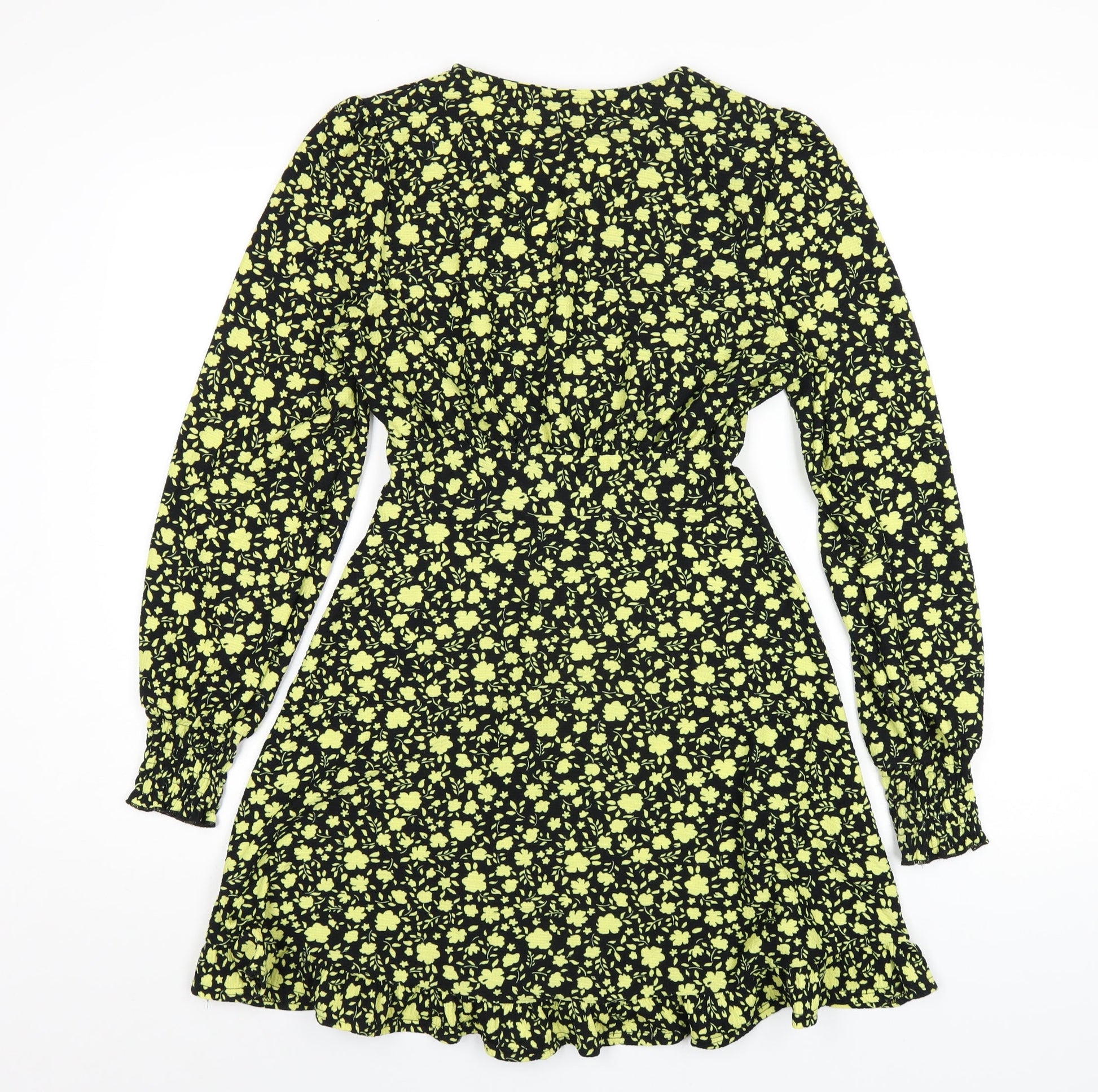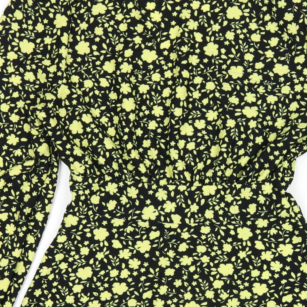 Miss Selfridge Womens Black Floral Polyester A-Line Size 10 V-Neck Pullover