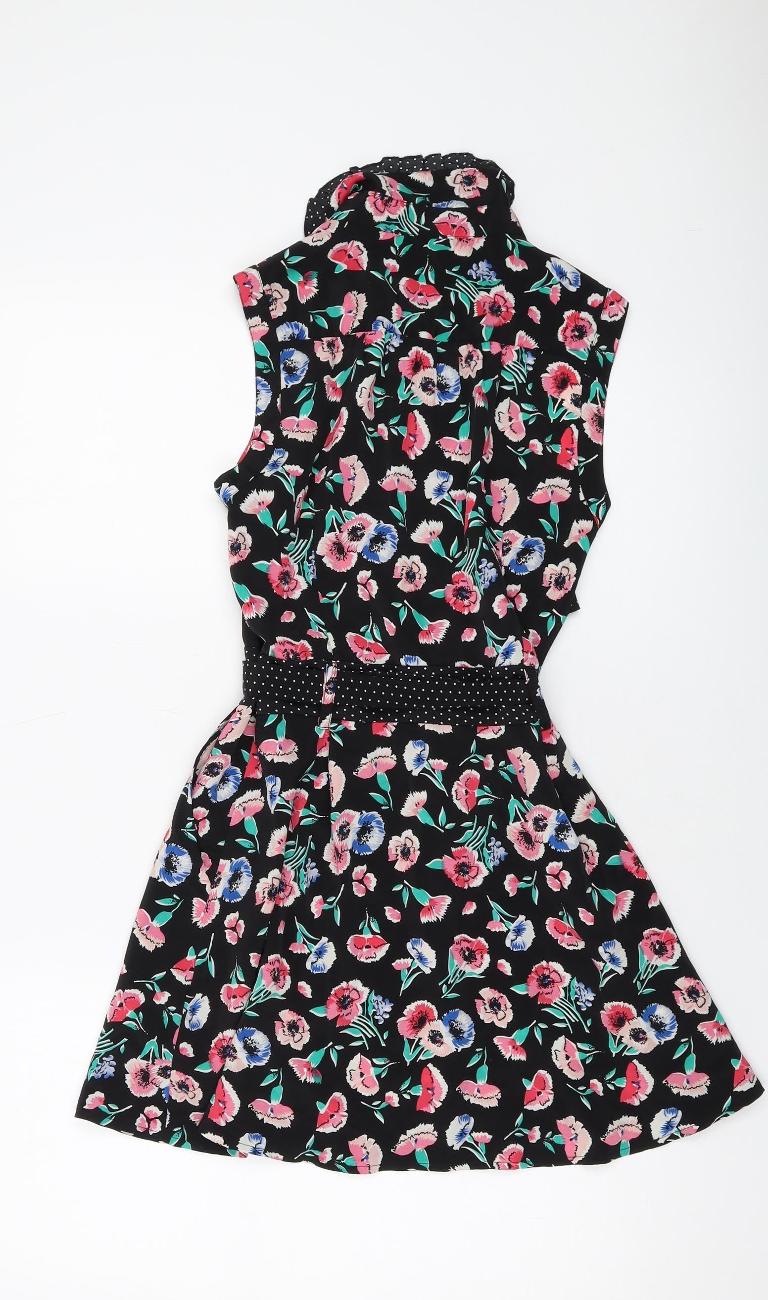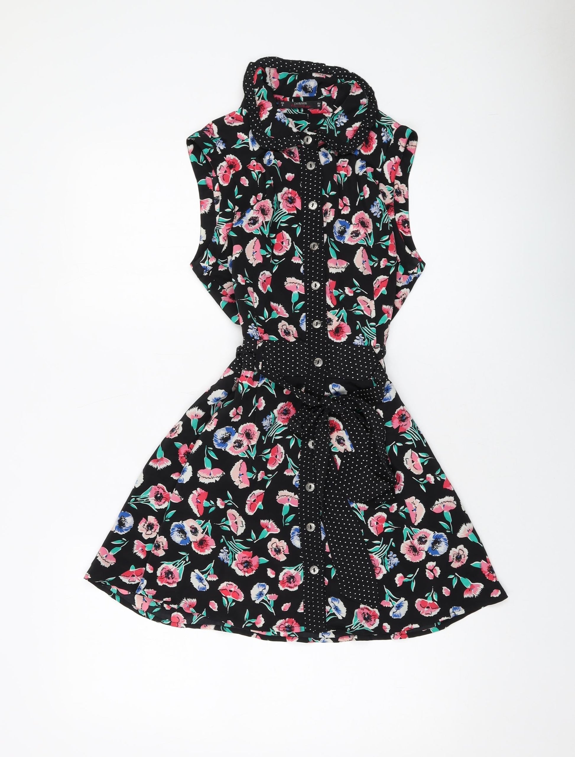 Miss Selfridge Womens Black Floral Polyester A-Line Size 8 Collared Button