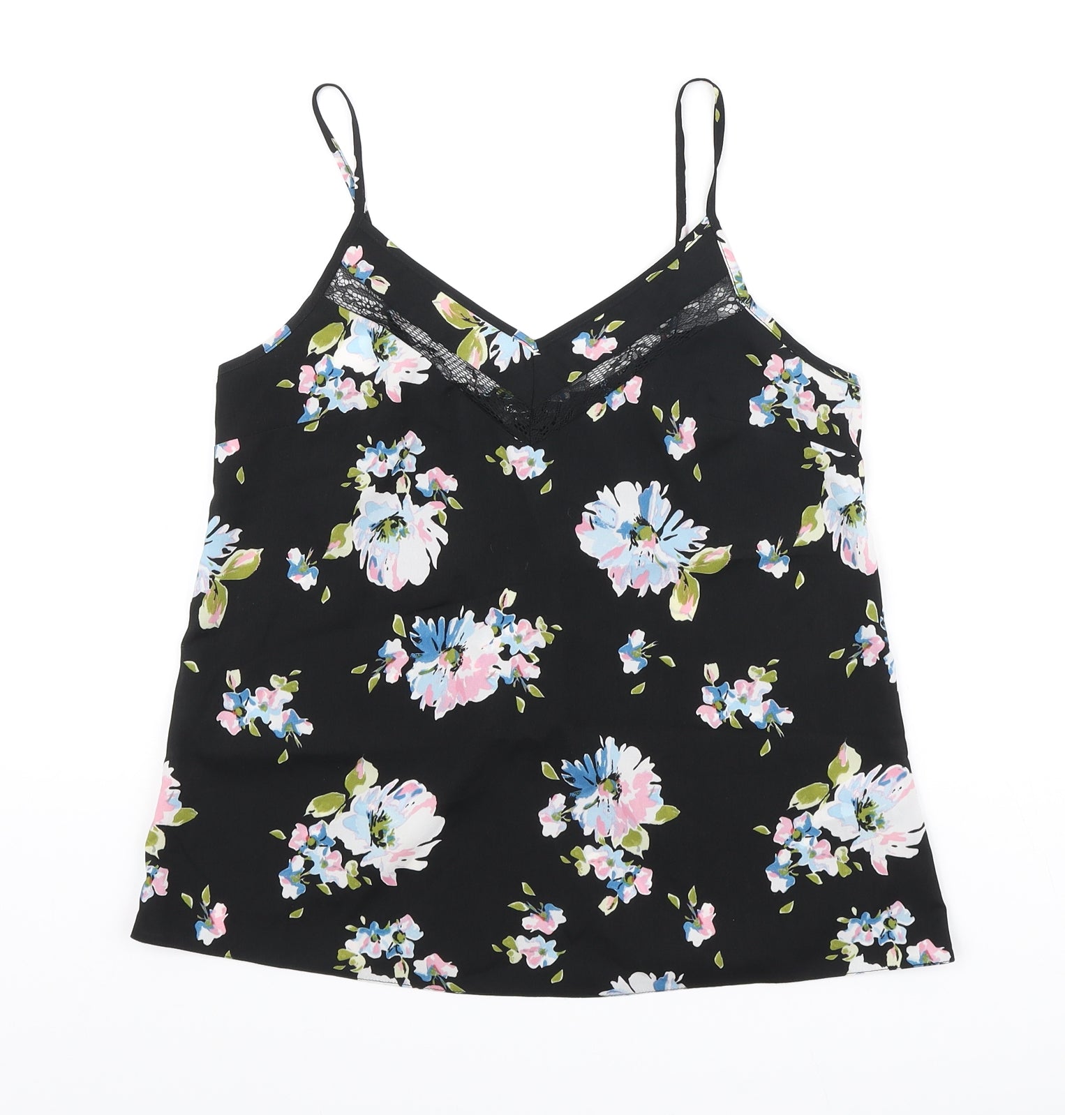 Miss Selfridge Womens Black Floral Polyester Camisole Blouse Size 8 V-Neck - Lace Detail