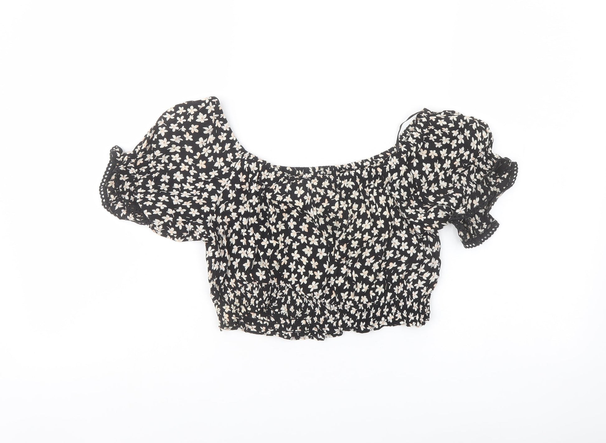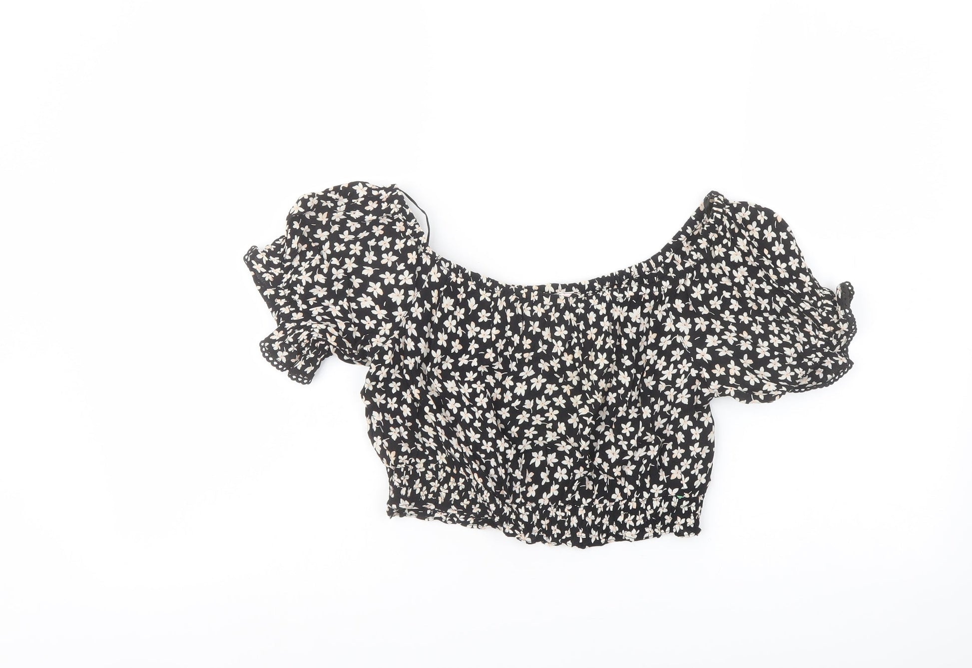Miss Selfridge Womens Black Floral Polyester Cropped Blouse Size 10 Off the Shoulder