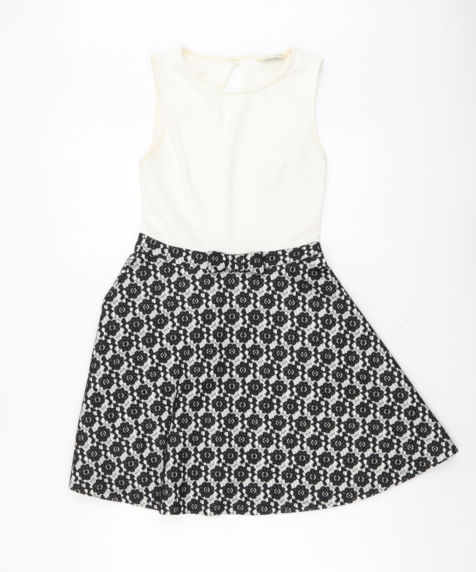 Miss Selfridge Womens Black Floral Polyester Fit & Flare Size 8 Round Neck Button