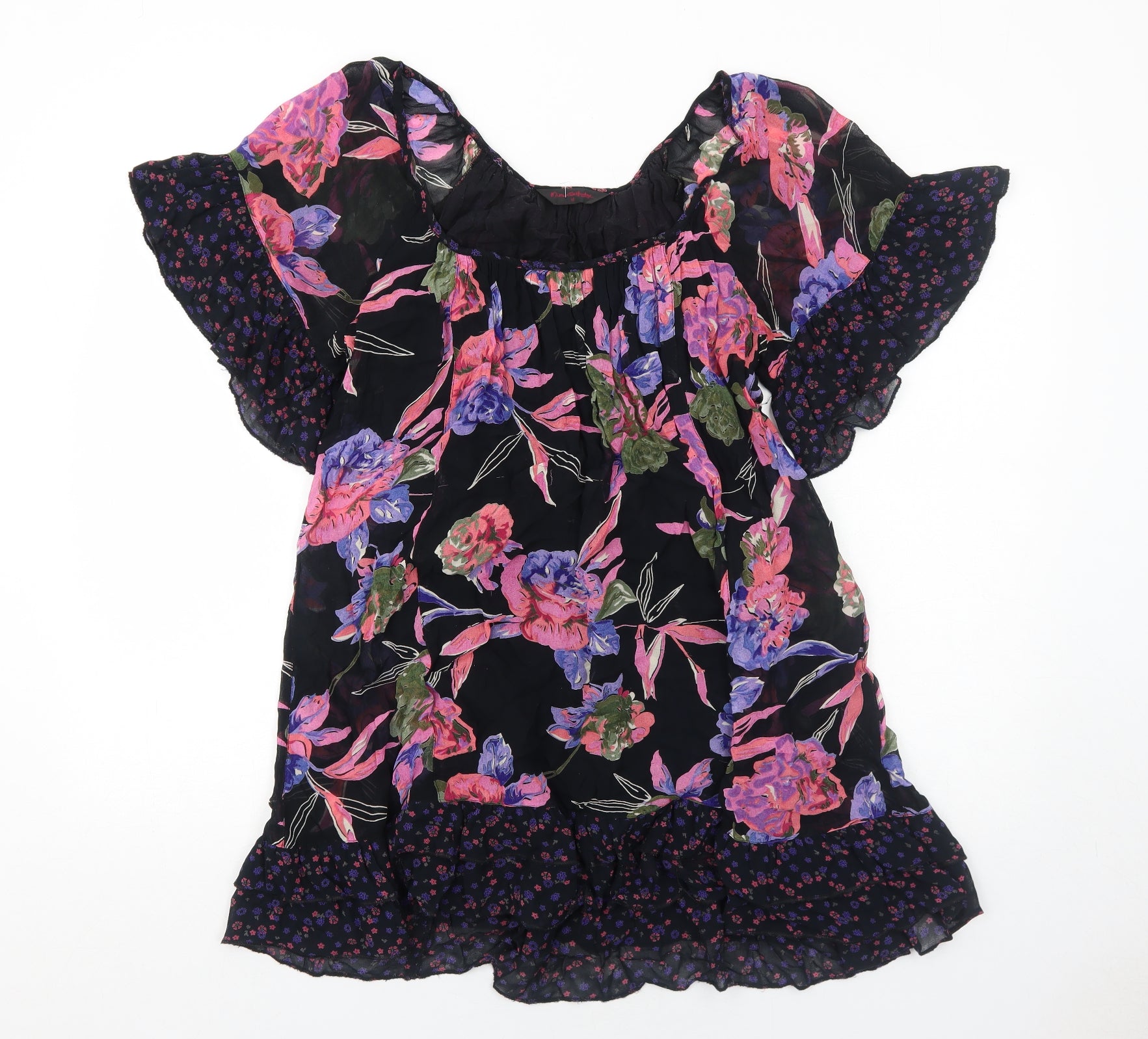 Miss Selfridge Womens Black Floral Polyester Mini Size 12 Boat Neck Pullover