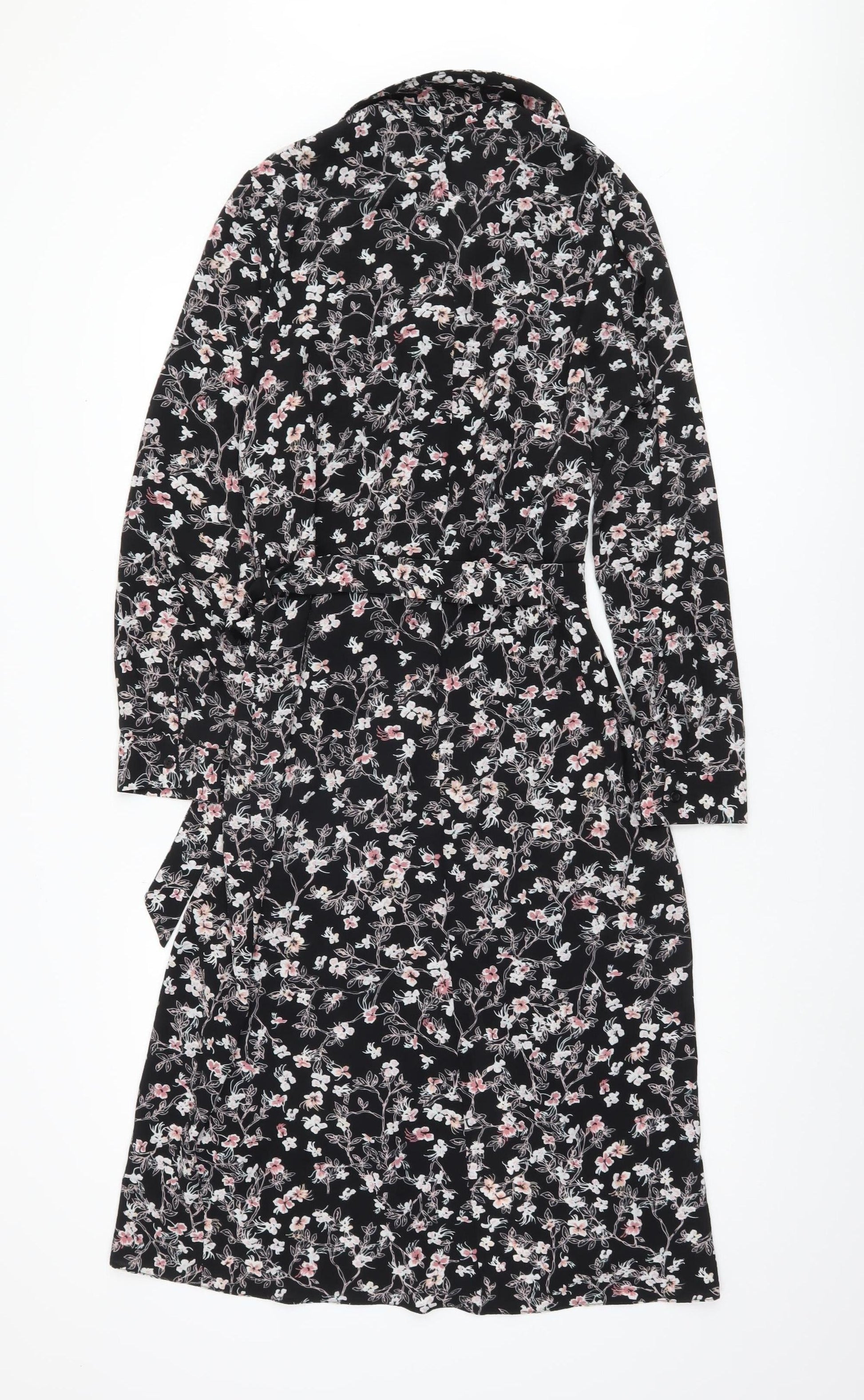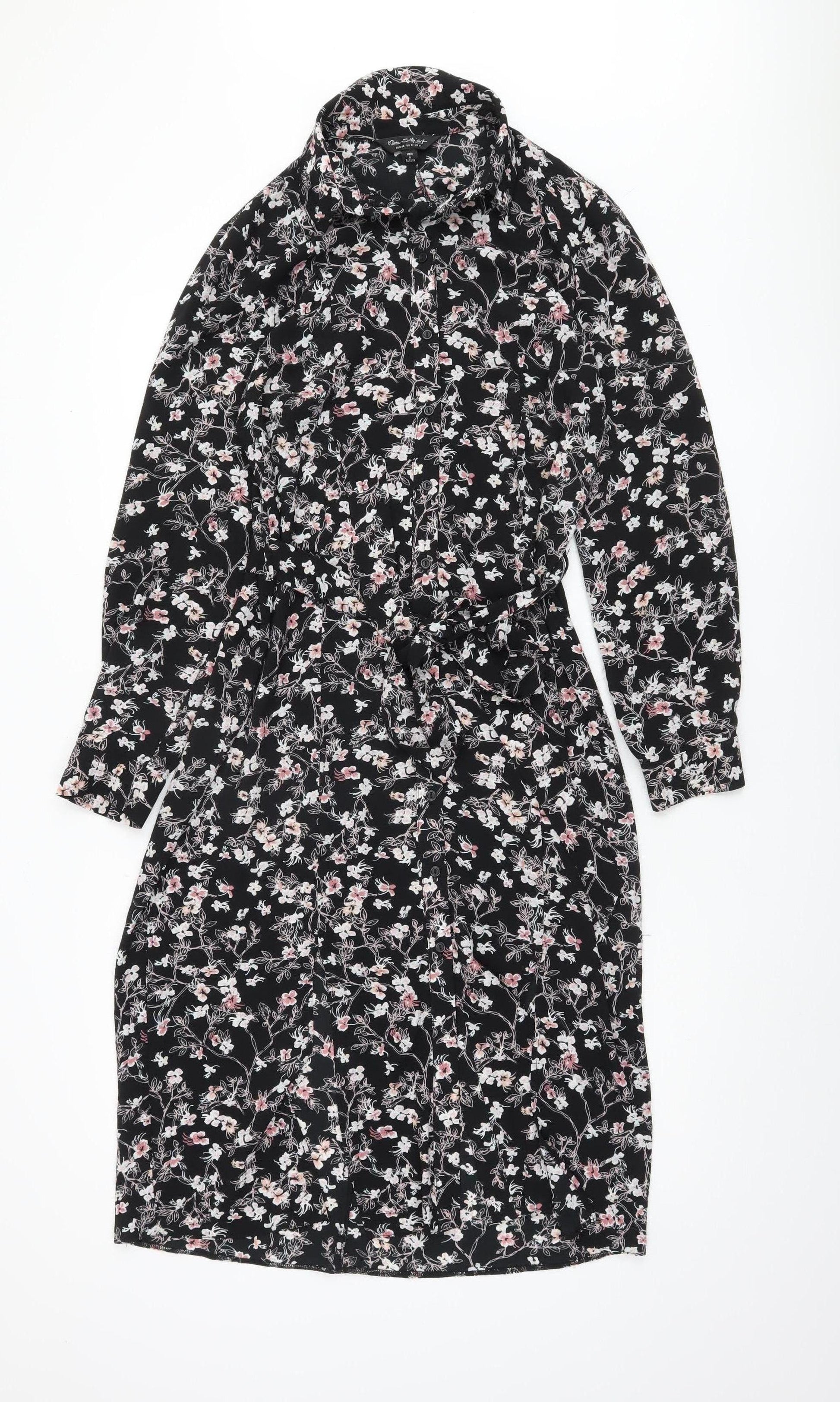 Miss Selfridge Women's Black Floral Shirt Dress Size 12