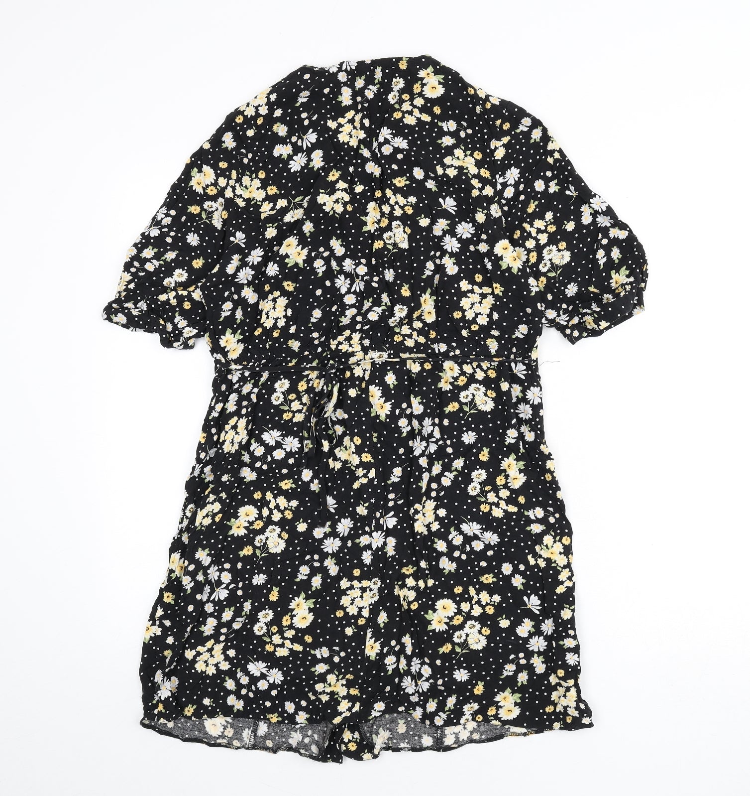 Miss Selfridge Womens Black Floral Viscose A-Line Size 12 V-Neck Button - Polka Dot