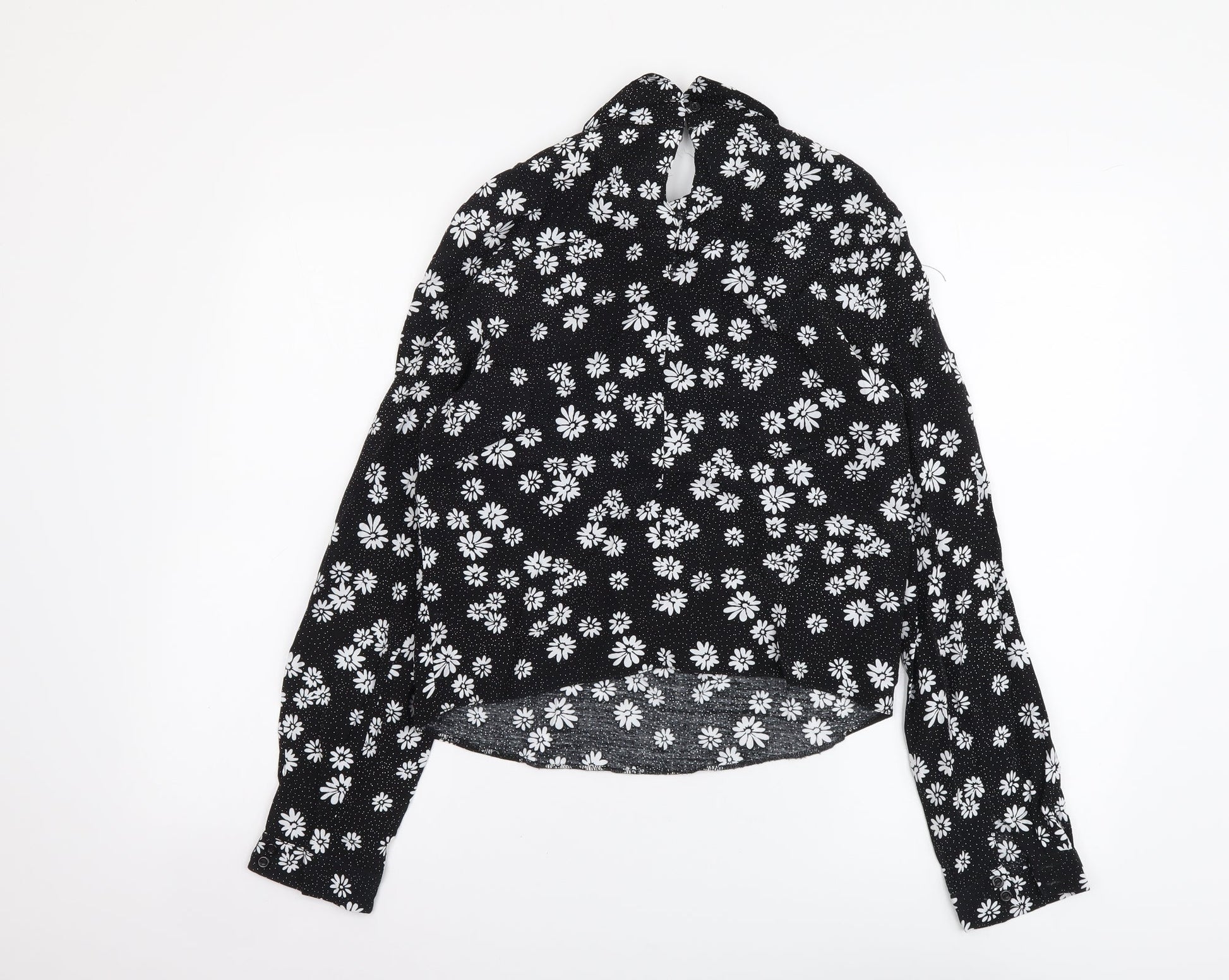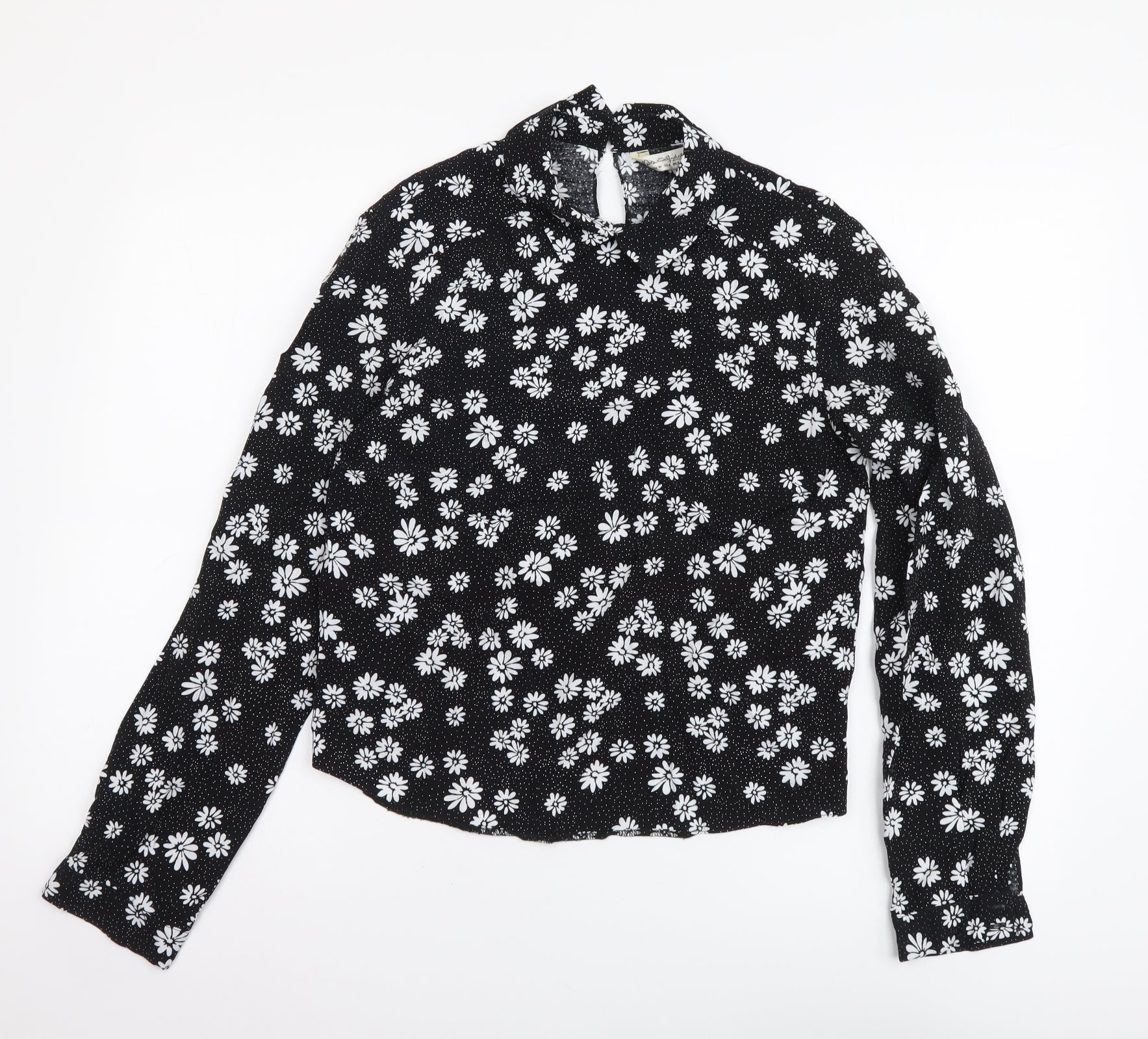 Miss Selfridge Womens Black Floral Viscose Basic Blouse Size 8 Collared