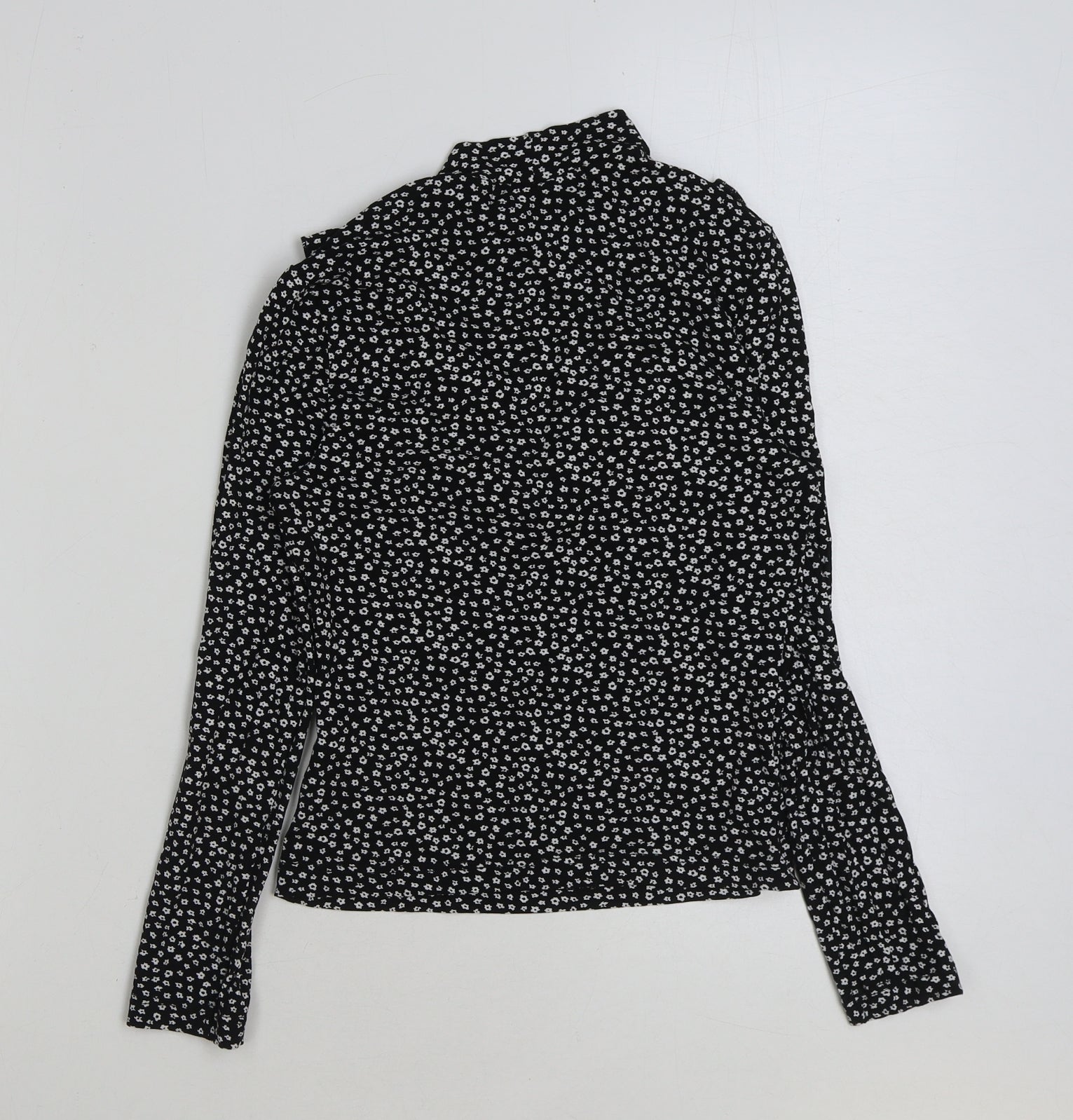 Miss Selfridge Womens Black Floral Viscose Basic Blouse Size 8 Mock Neck