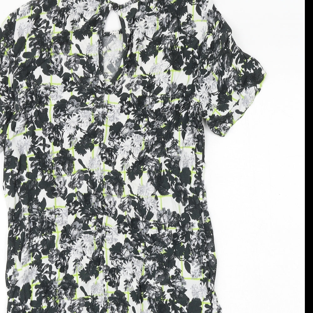 Miss Selfridge Womens Black Floral Viscose Shift Size 10 Round Neck Button