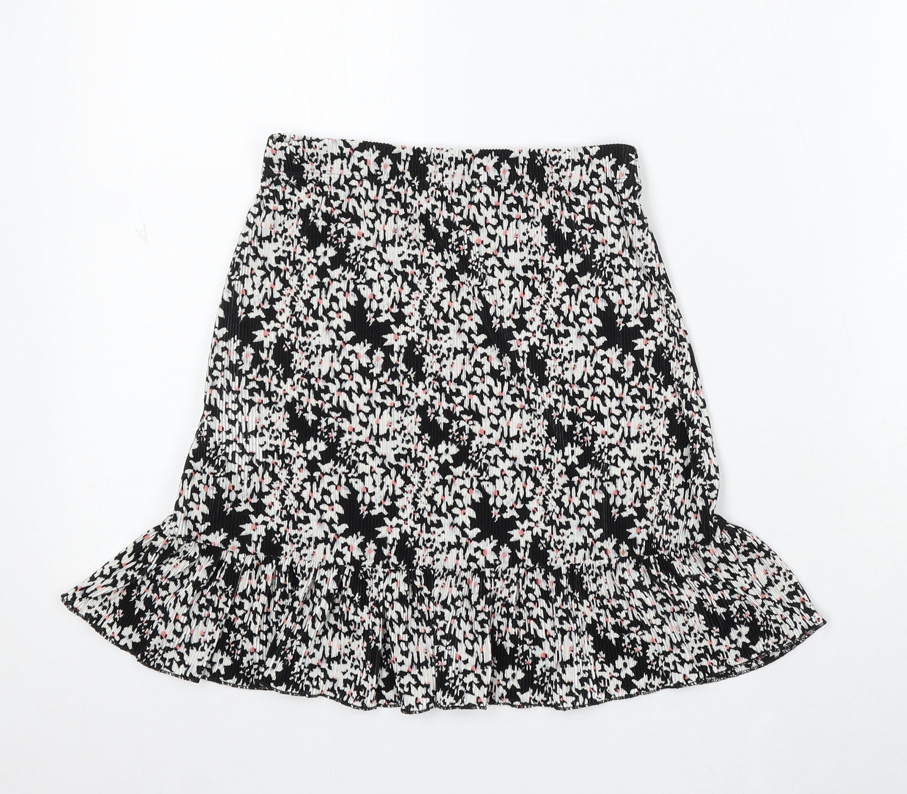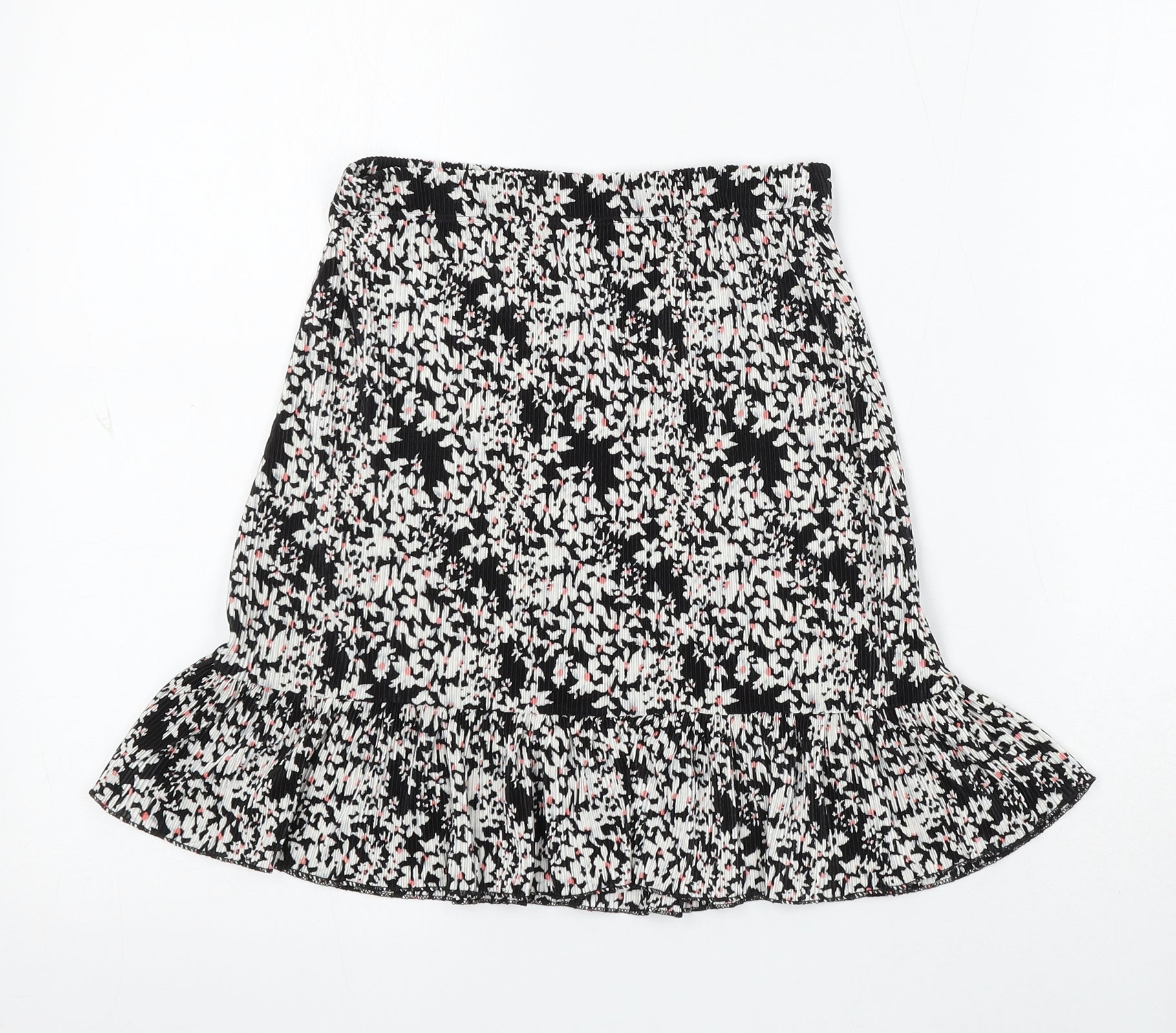 Miss Selfridge Womens Black Floral Viscose Skater Skirt Size 8