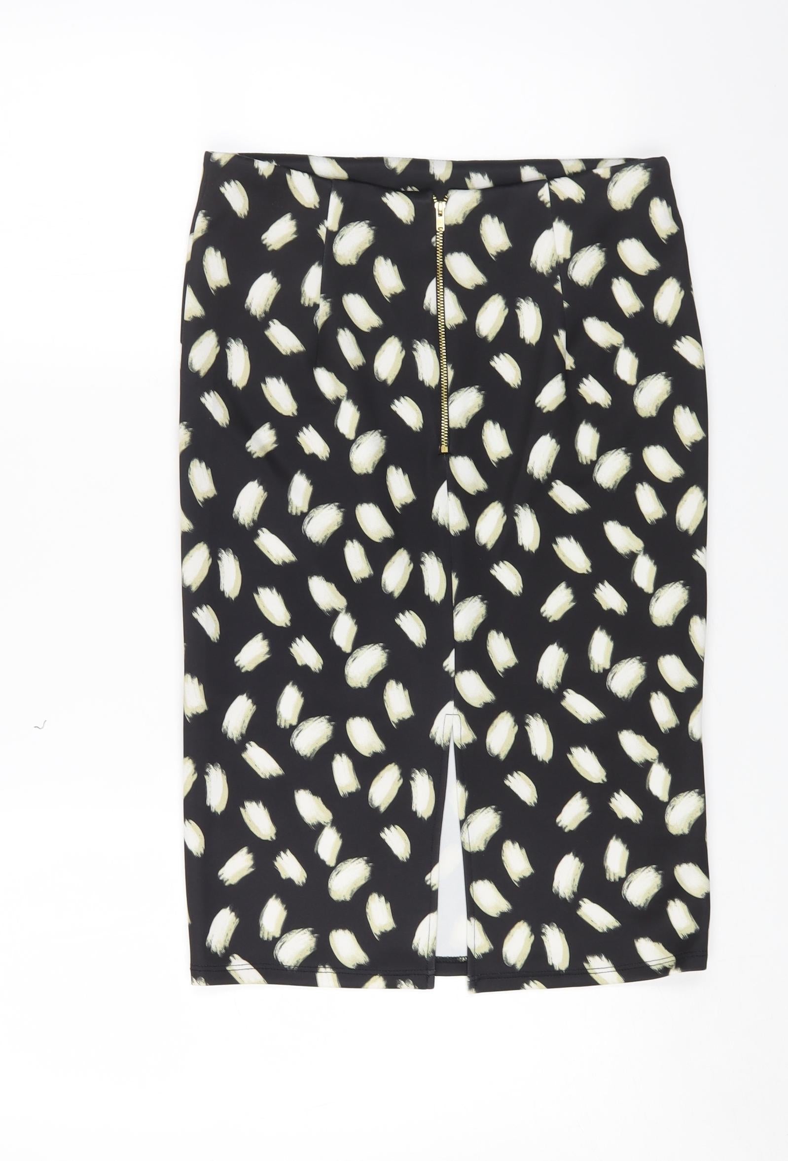 Miss Selfridge Womens Black Geometric Polyester A-Line Skirt Size 10 Zip