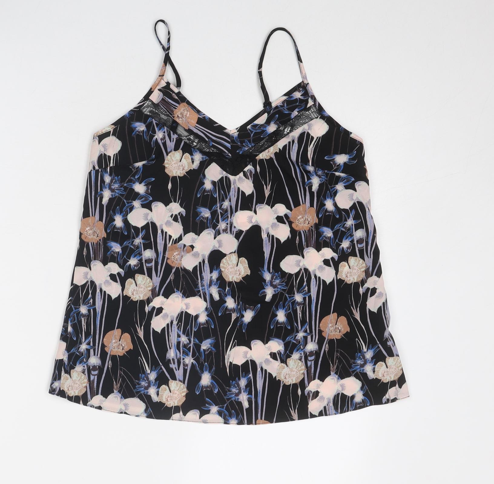 Miss Selfridge Womens Black Geometric Polyester Camisole Tank Size 6 V-Neck