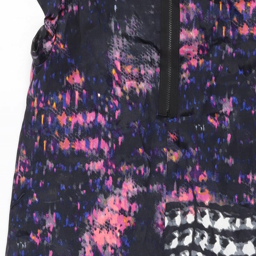 Miss Selfridge Womens Black Geometric Polyester Tank Dress Size 12 Round Neck Zip