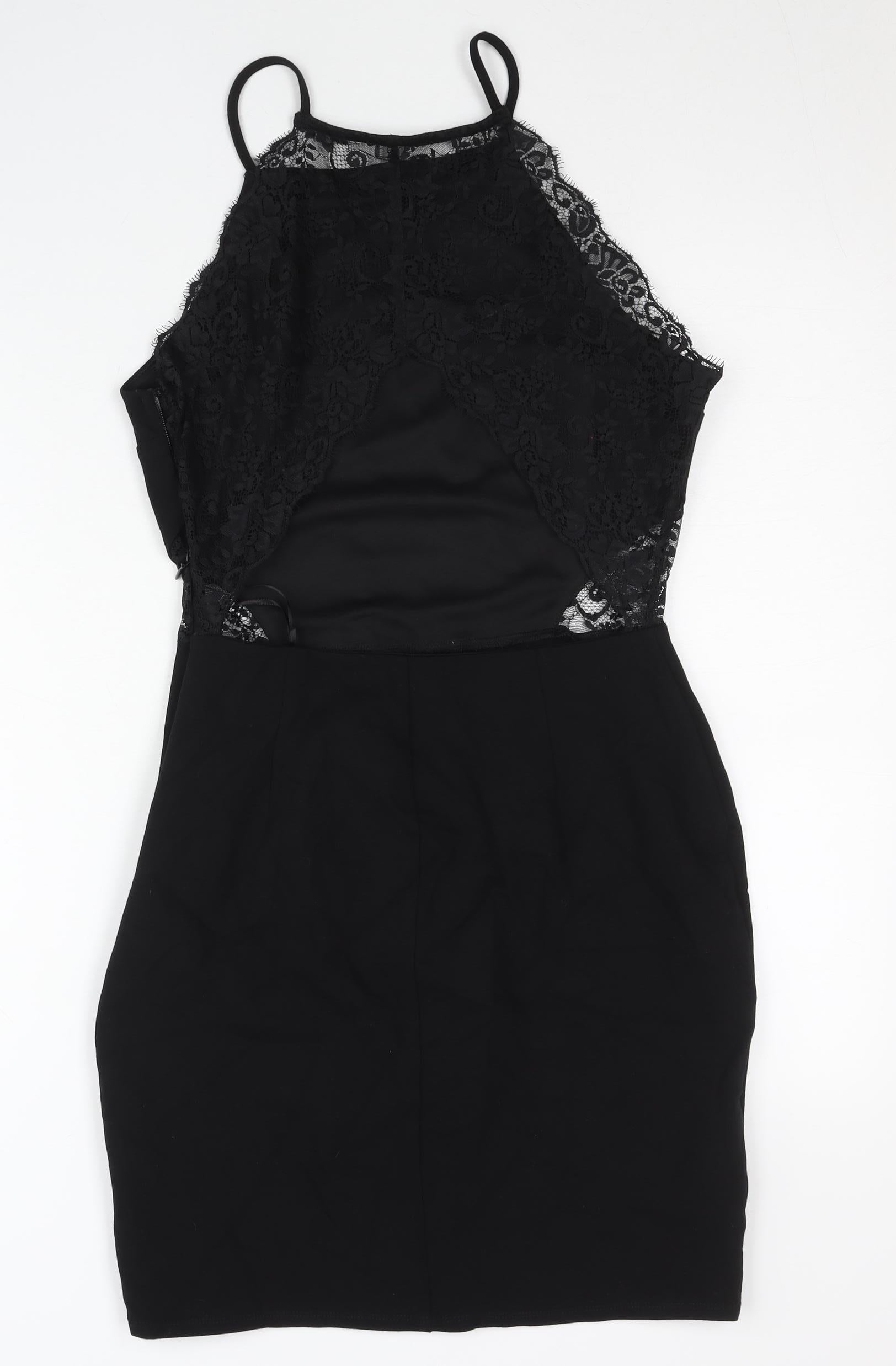 Miss Selfridge Womens Black Lace Bodycon Halter Party Dress UK 12