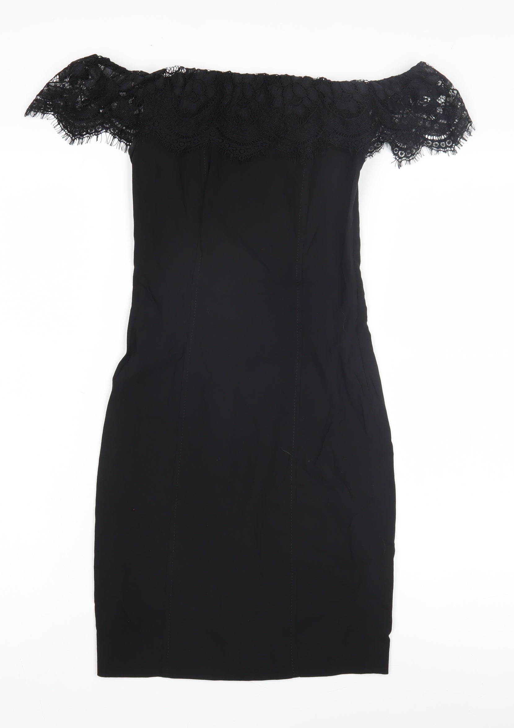 Miss Selfridge Women's Black Off Shoulder Sheath Dress Size 8