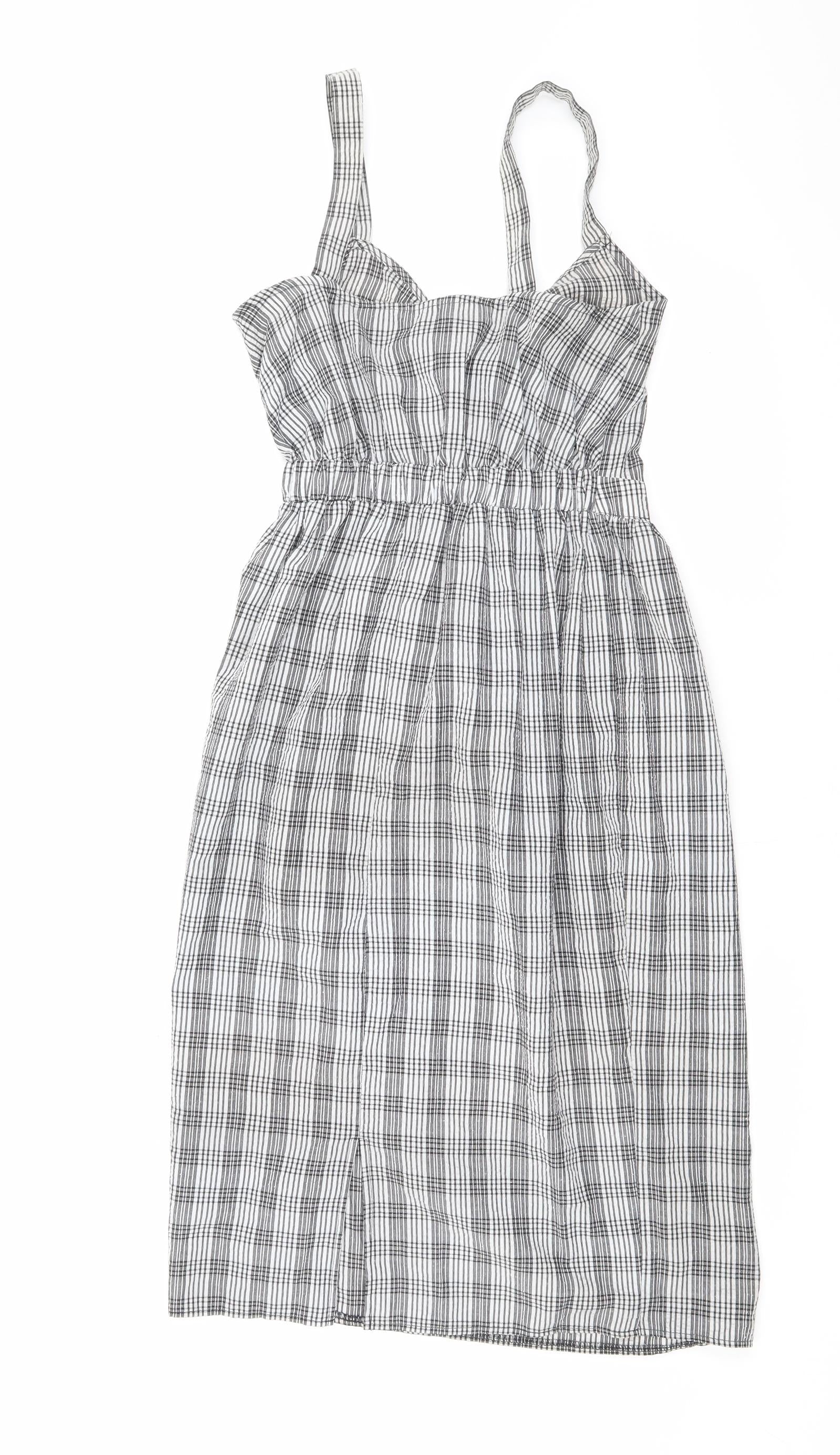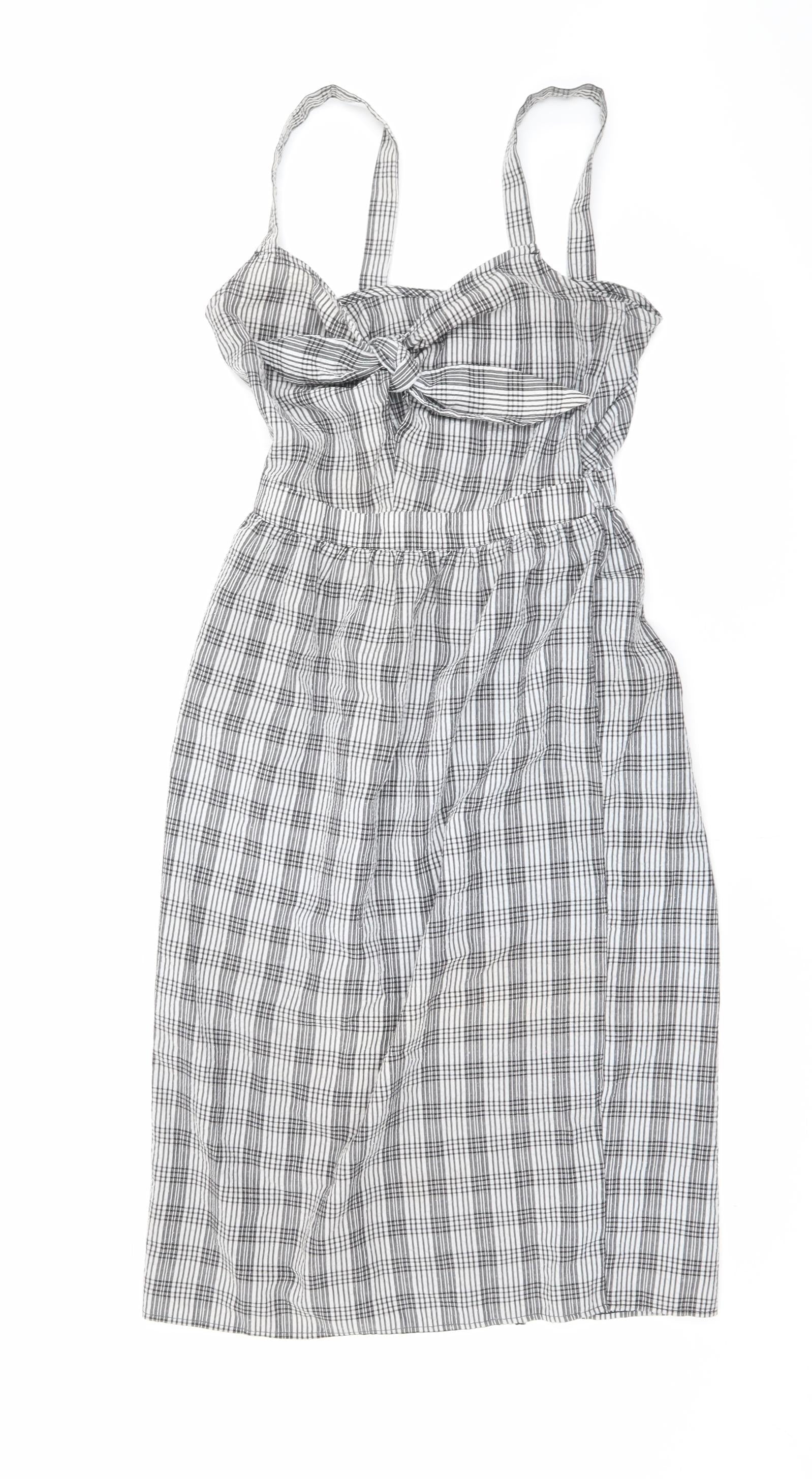 Miss Selfridge Womens Black Plaid Polyester A-Line Size 8 V-Neck Pullover