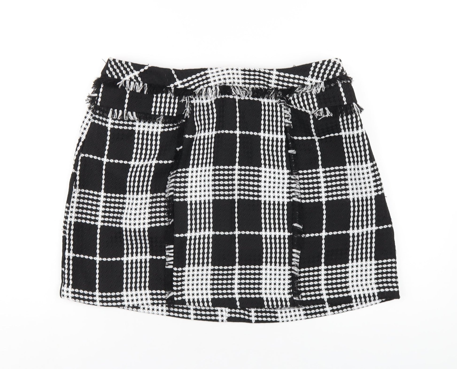 Miss Selfridge Womens Black Plaid Polyester A-Line Skirt Size 12 Zip
