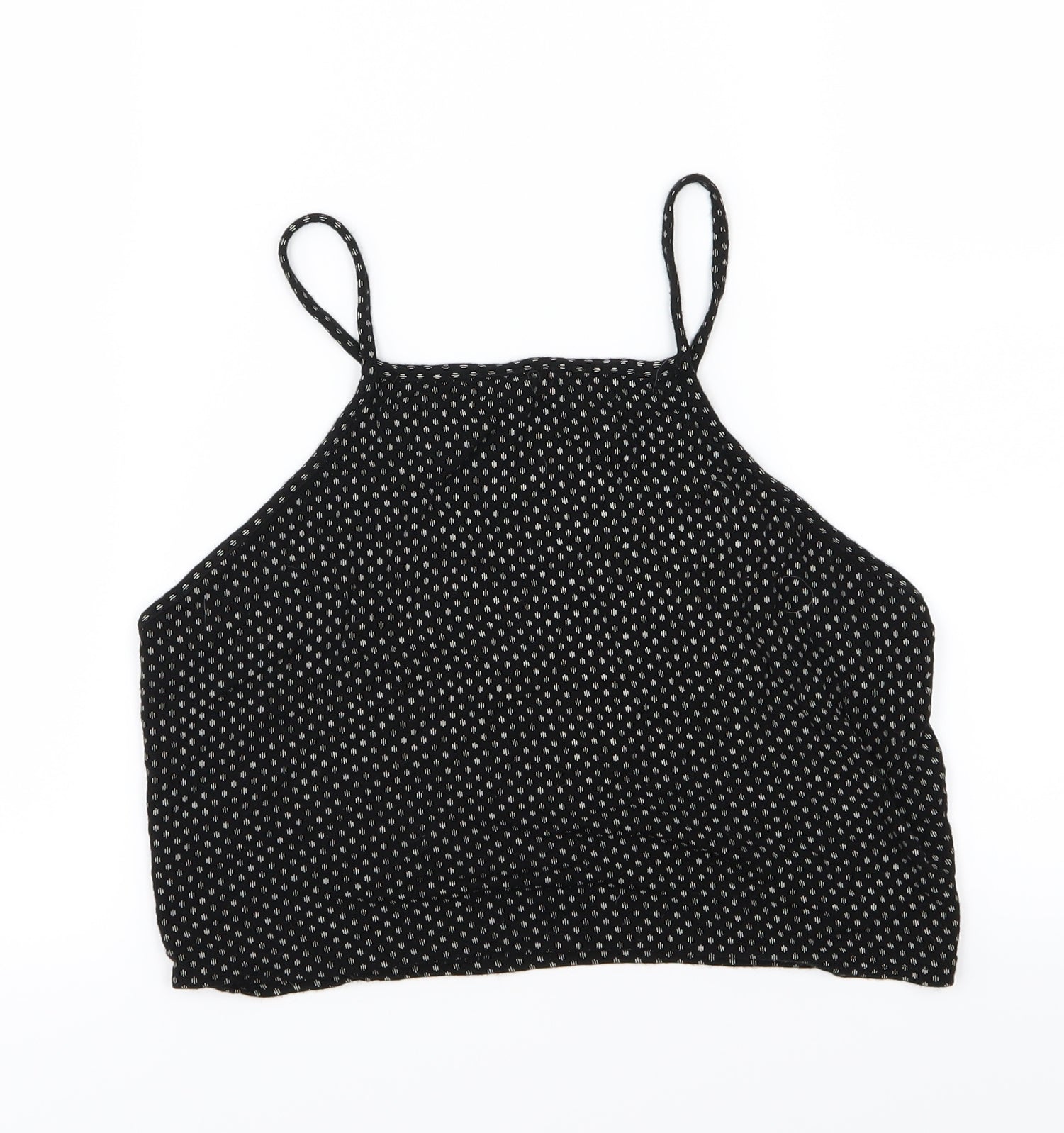 Miss Selfridge Womens Black Polka Dot Jersey Cropped Tank Size 12