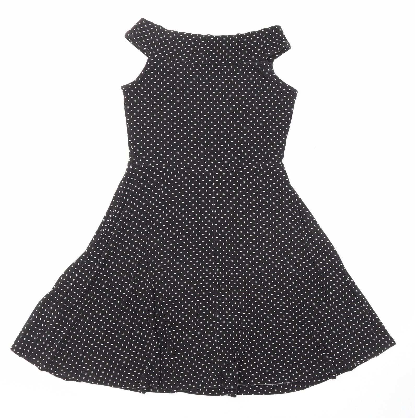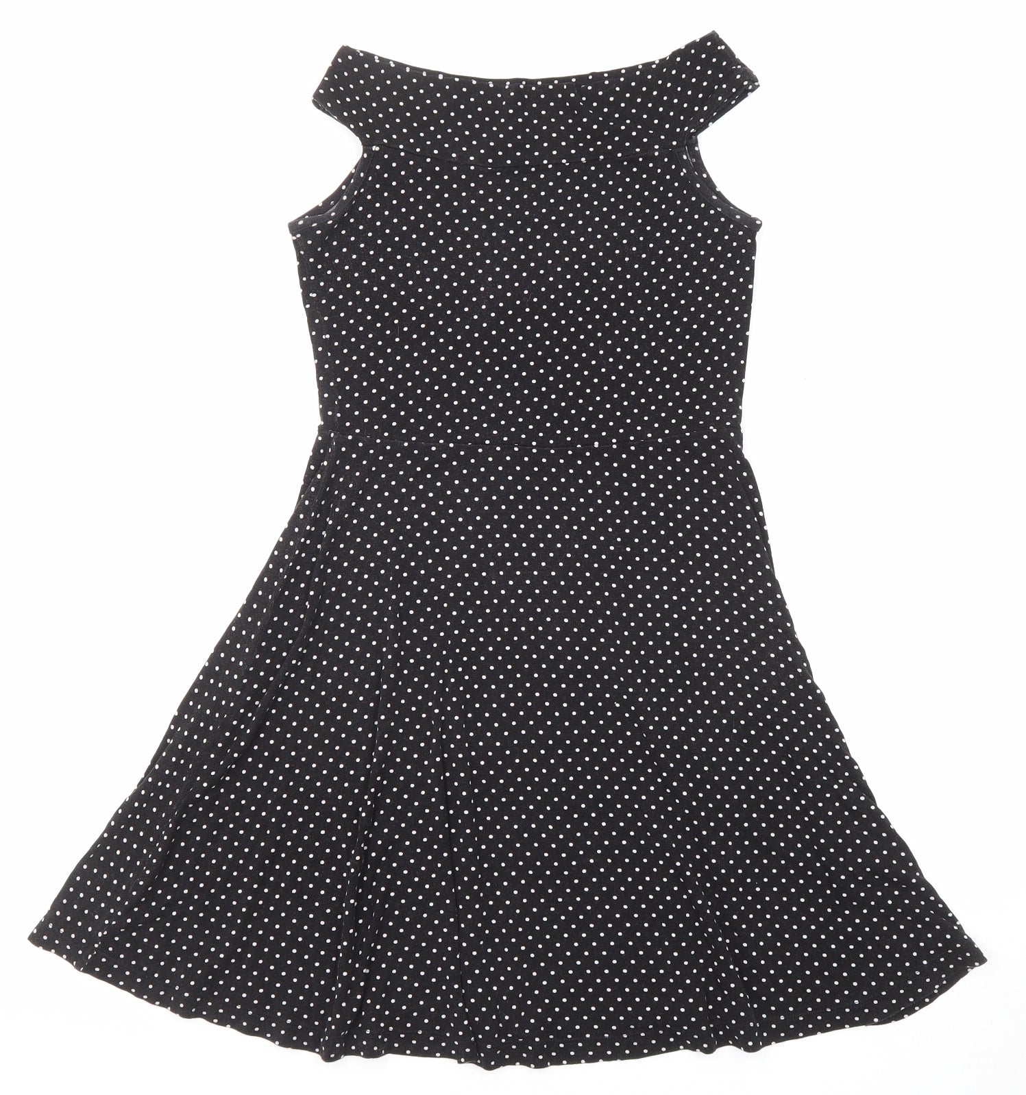 Miss Selfridge Womens Black Polka Dot Viscose Fit & Flare Size 8 Boat Neck Pullover