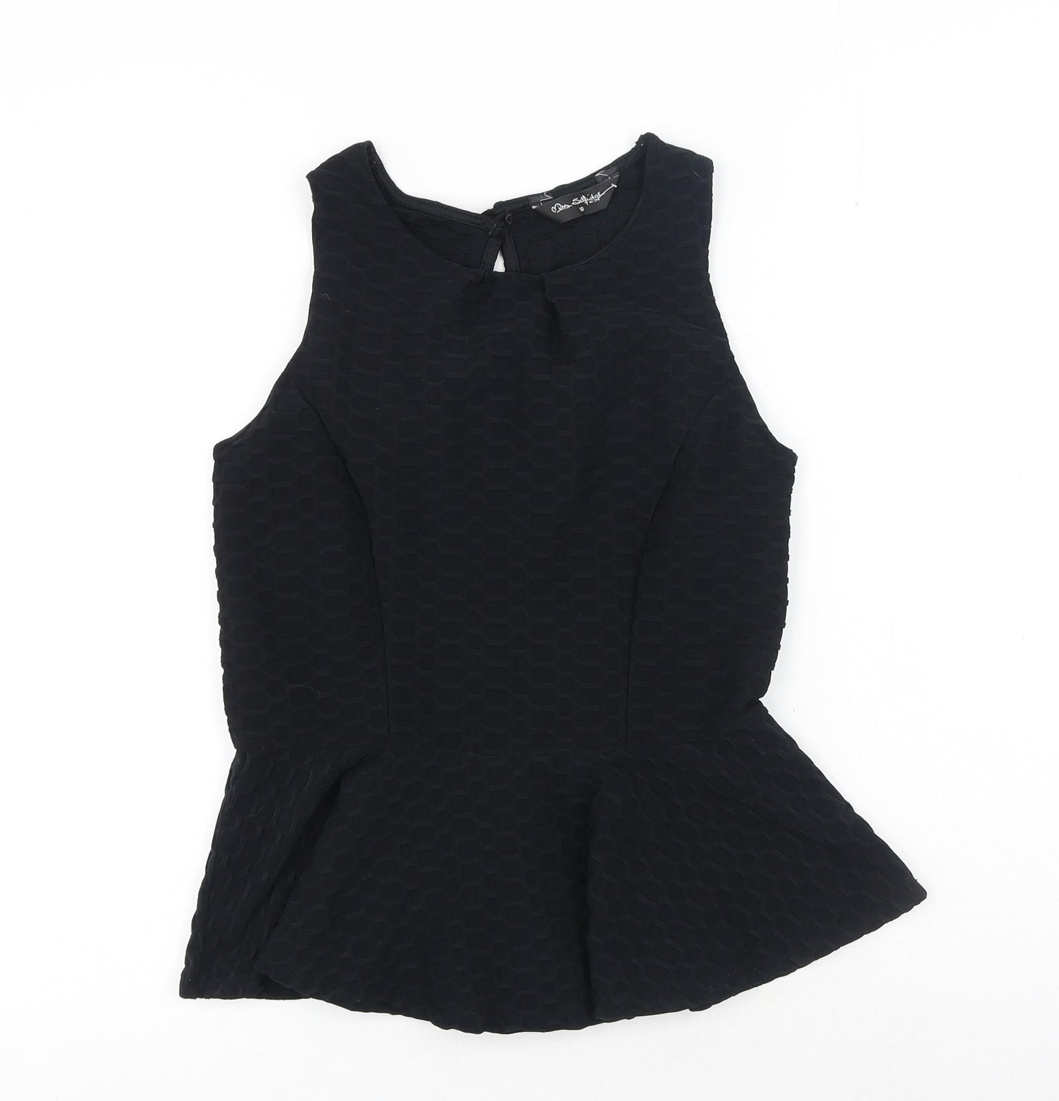 Miss Selfridge Womens Black Polyester Basic Blouse Size 10 Round Neck