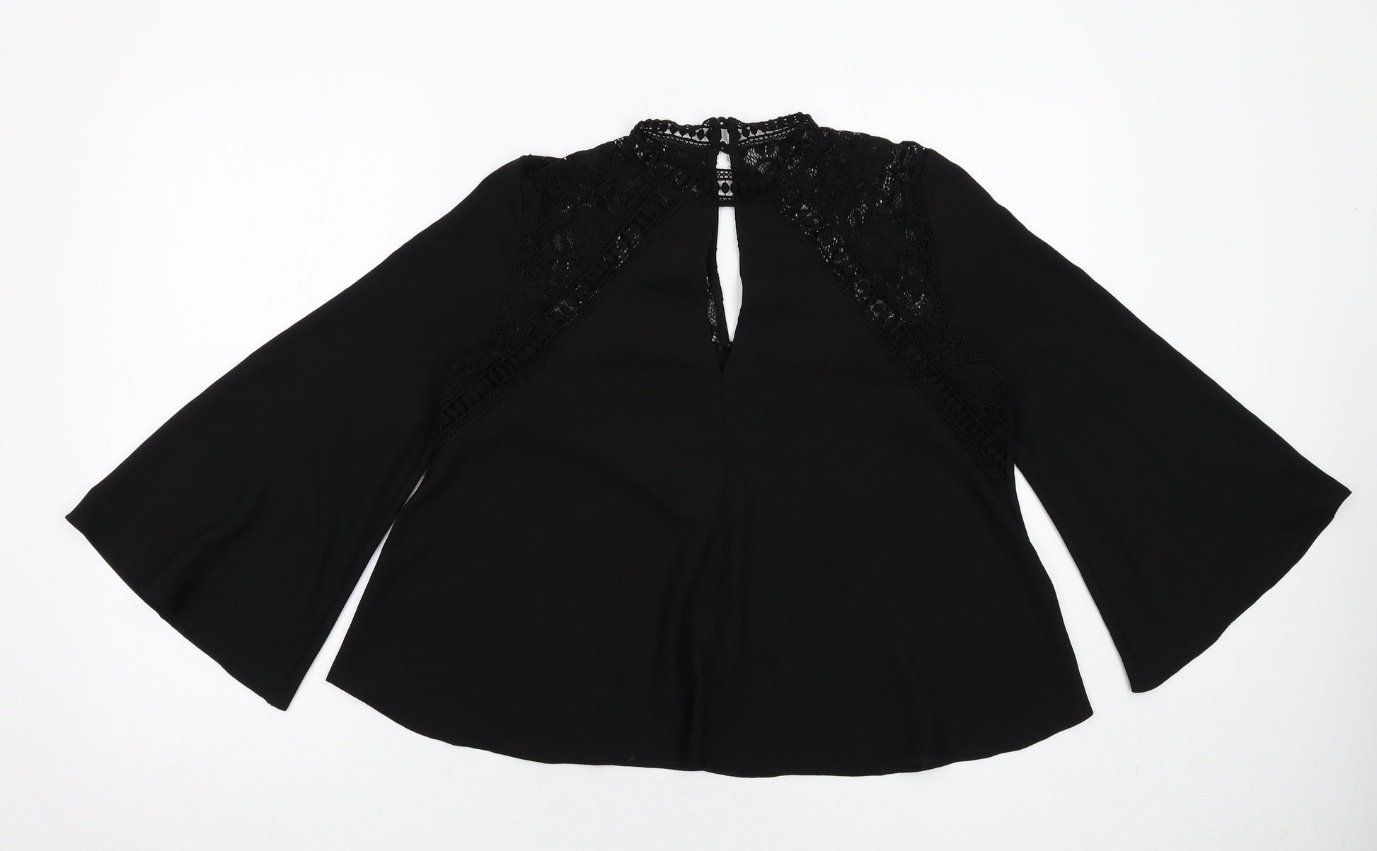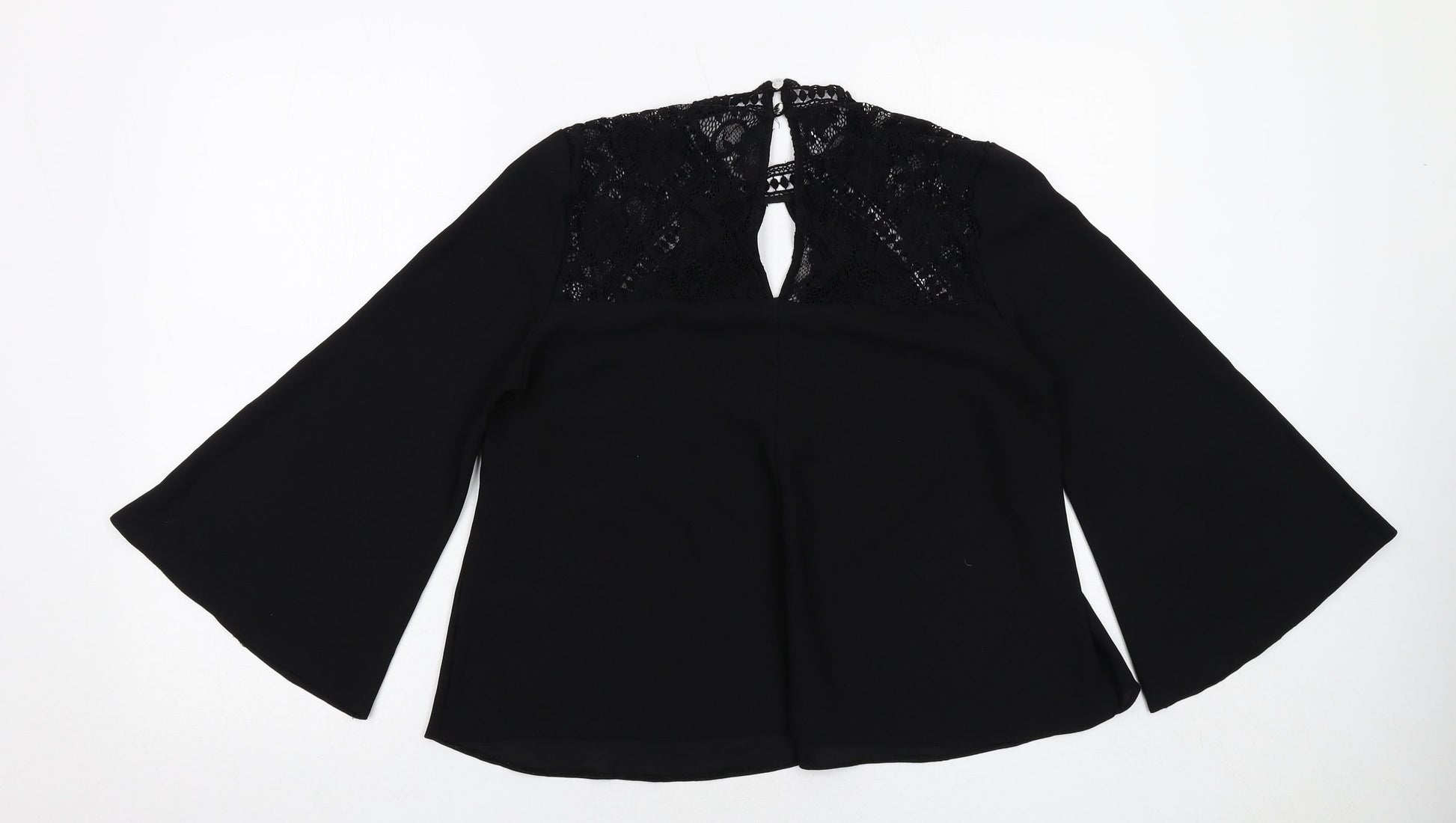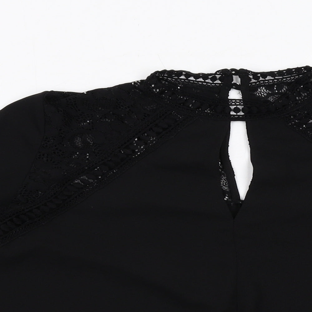 Miss Selfridge Womens Black Polyester Basic Blouse Size 10 V-Neck - Flute Sleeve Lace Detail