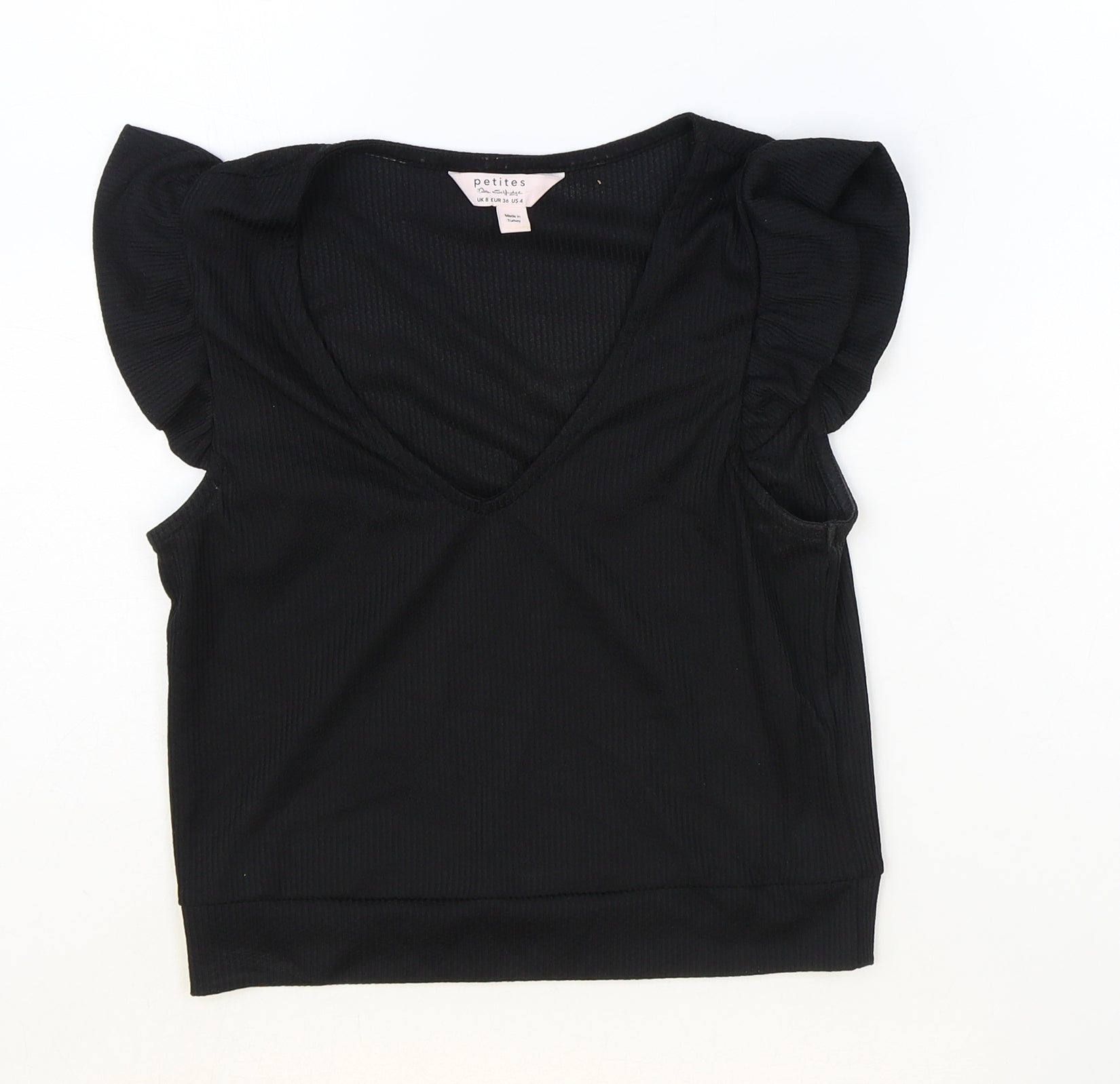 Miss Selfridge Womens Black Polyester Basic Tank Size 8 V-Neck