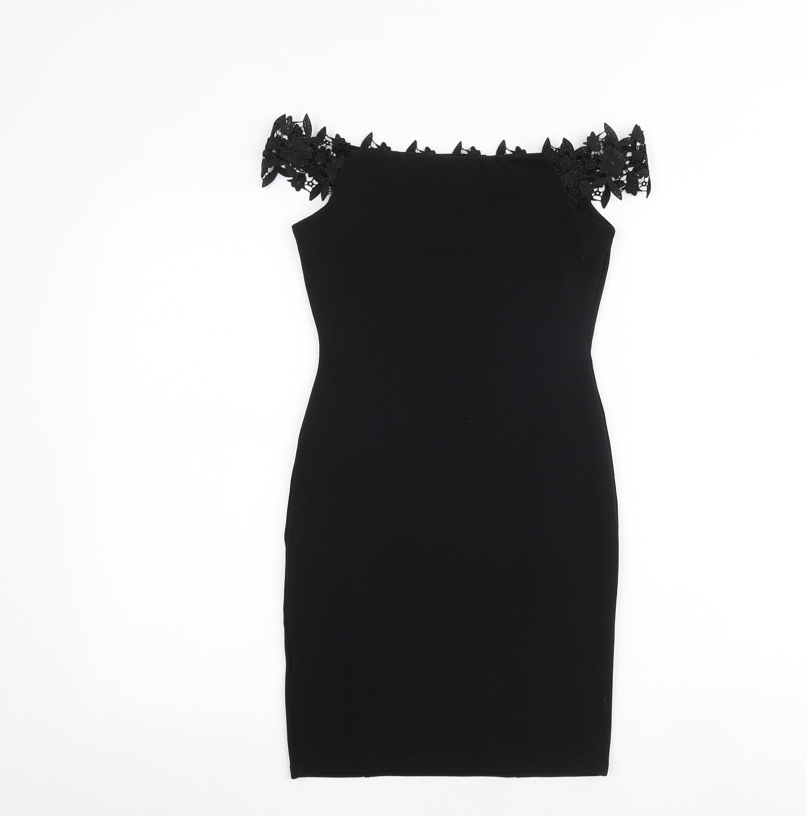 Miss Selfridge Womens Black Polyester Bodycon Size 4 Off the Shoulder Pullover