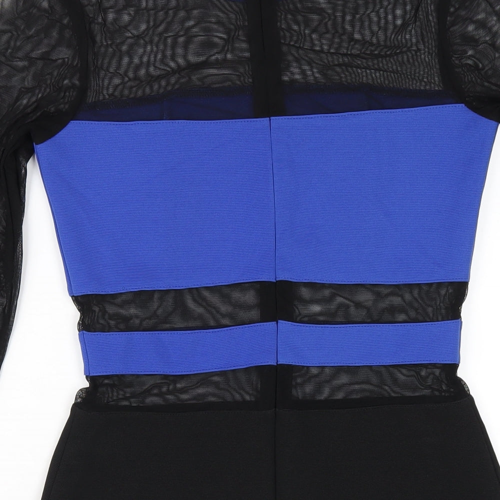 Miss Selfridge Womens Black Polyester Bodycon Size 8 Round Neck Zip