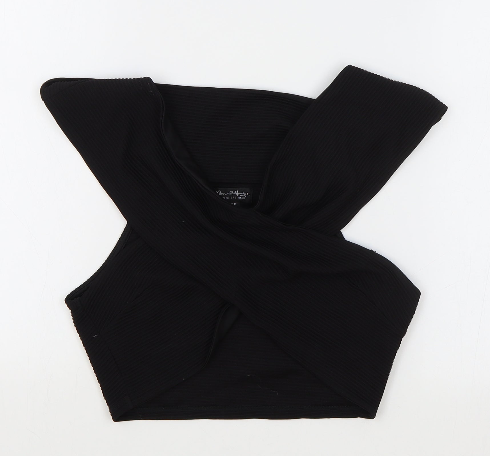 Miss Selfridge Womens Black Polyester Cropped T-Shirt Size 10 Off the Shoulder