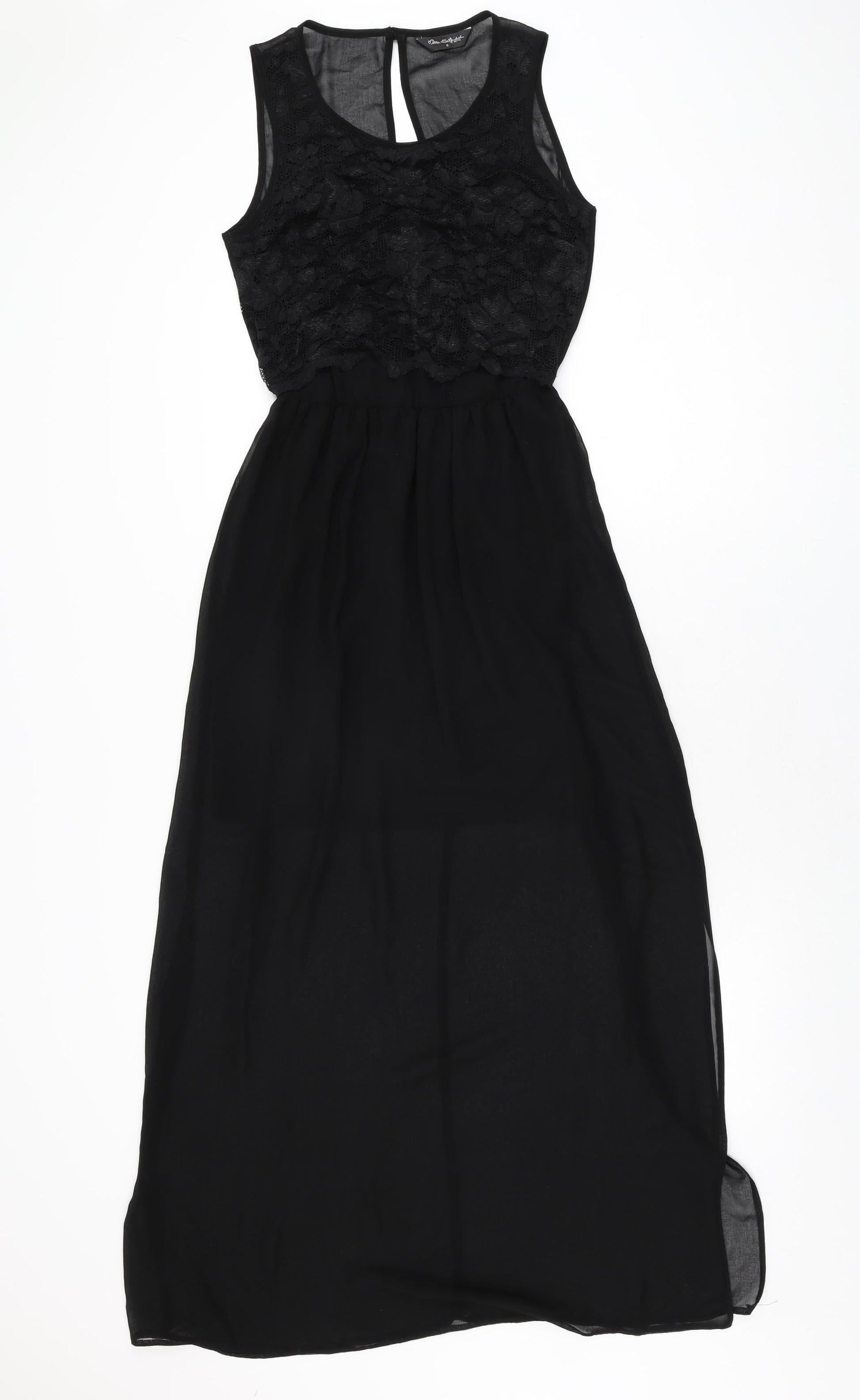Miss Selfridge Womens Black Polyester Maxi Size 6 Round Neck Button