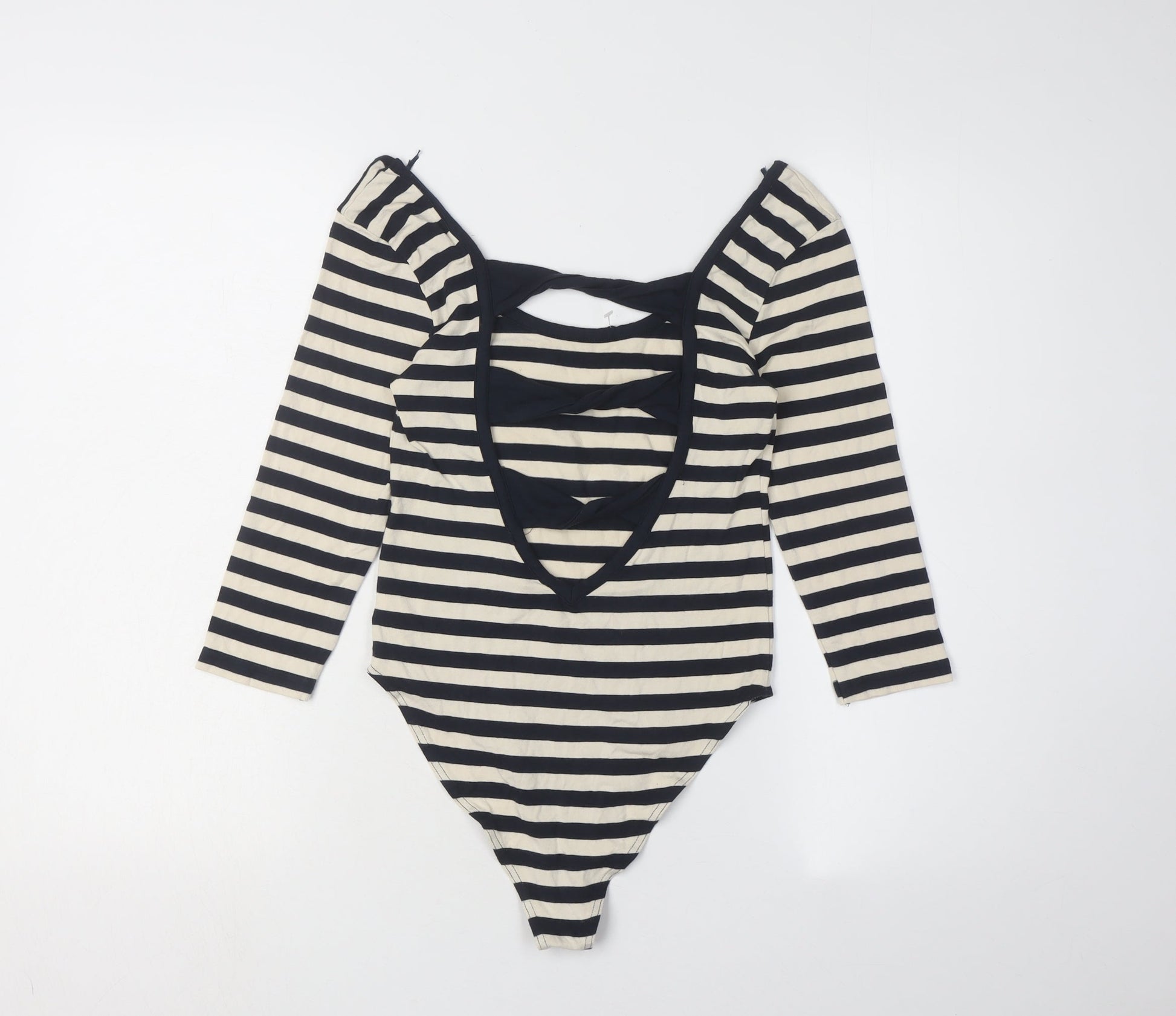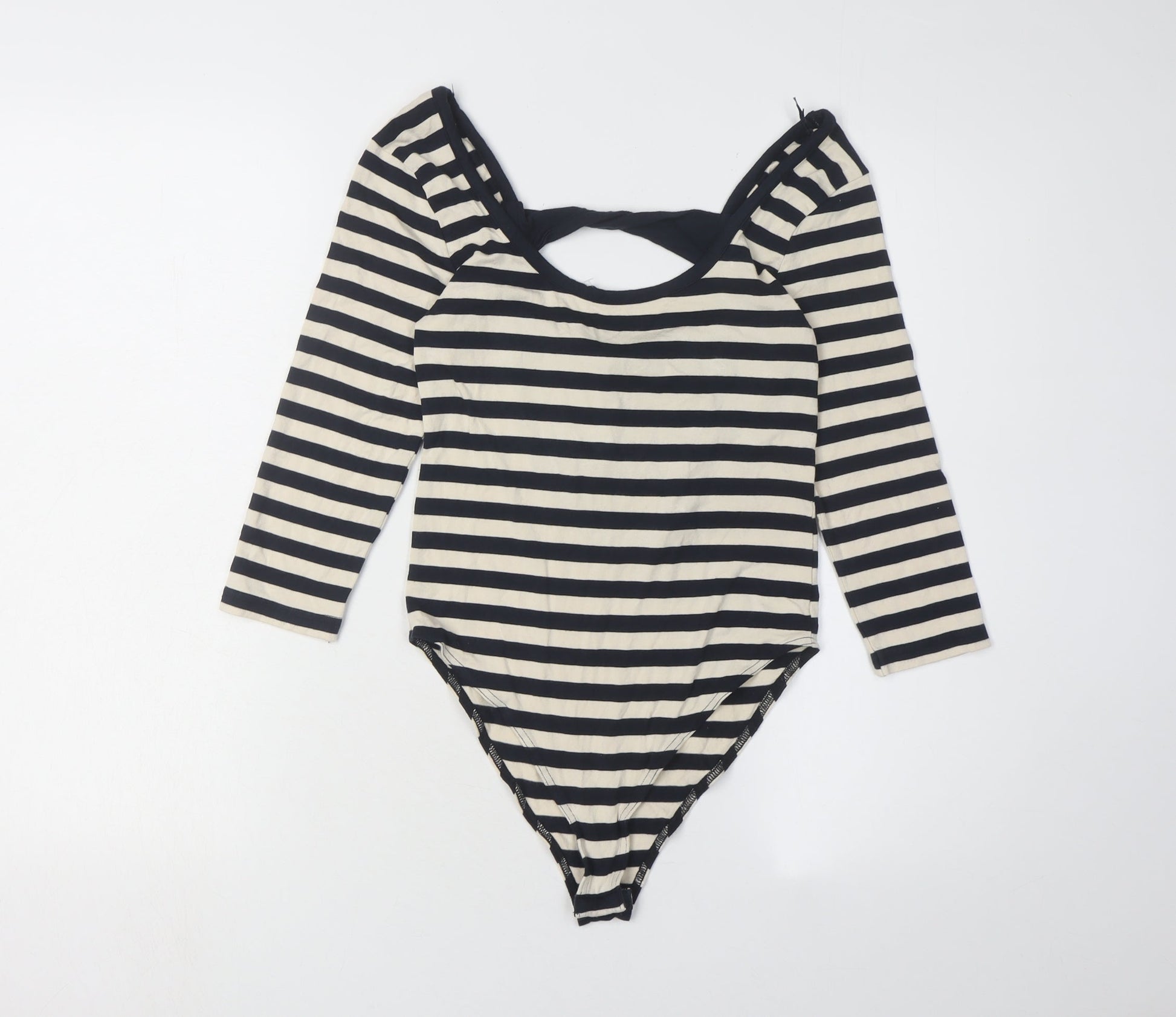 Miss Selfridge Women's Black Stripe Bodysuit Size 12