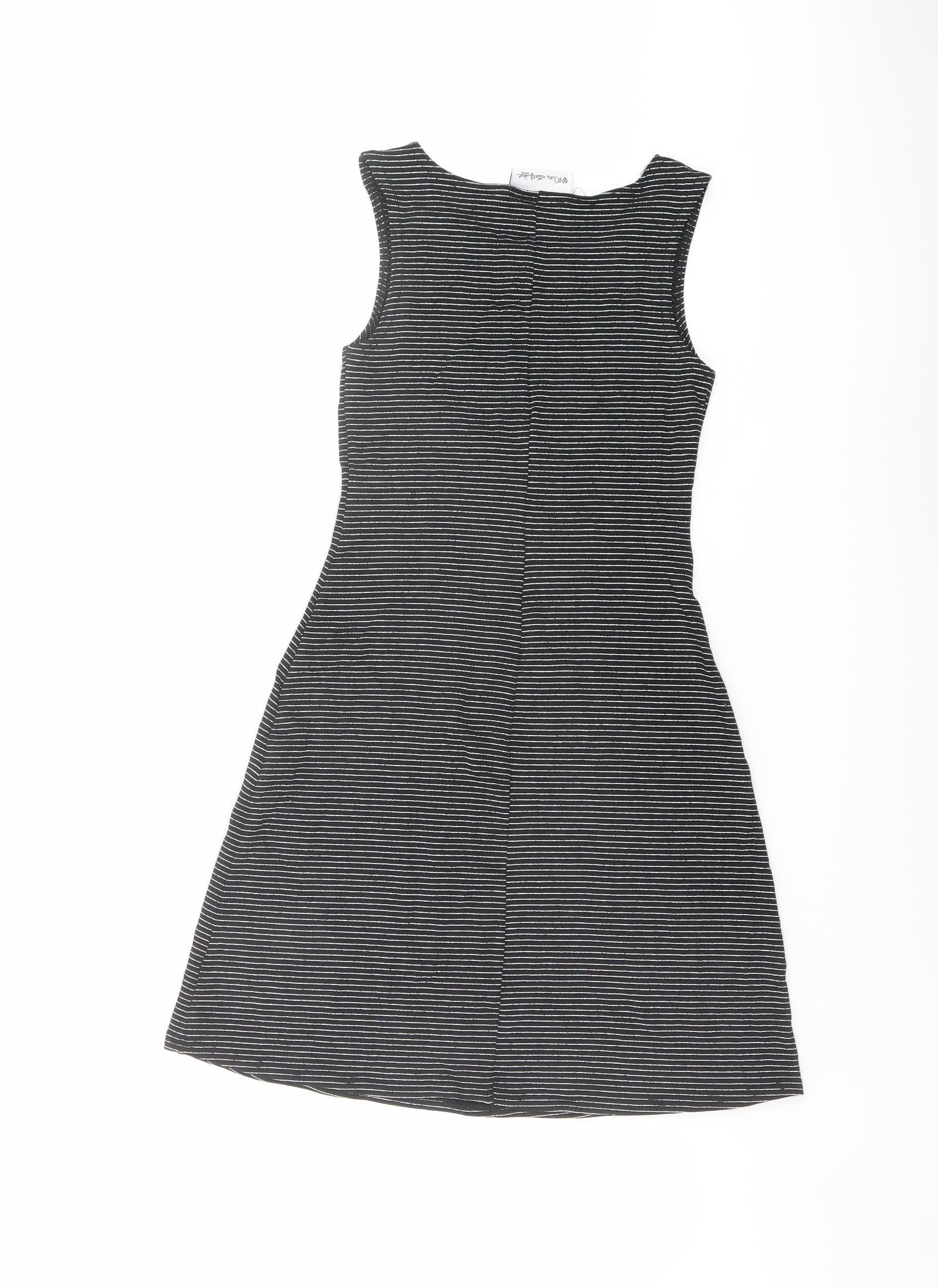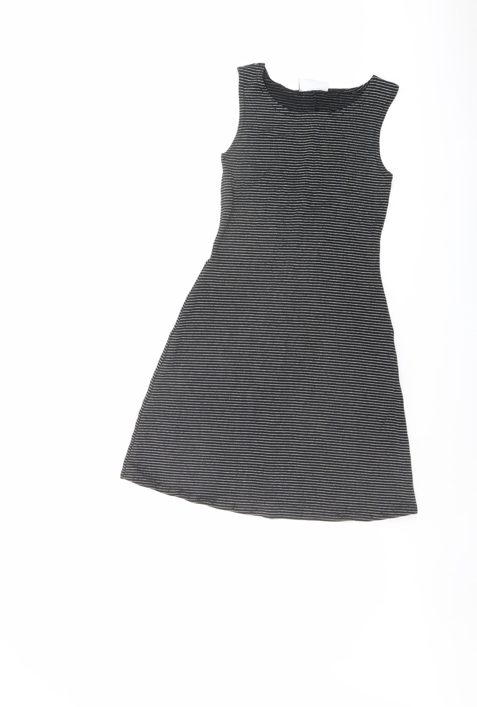 Miss Selfridge Womens Black Striped Acetate Tank Dress Size 8 Boat Neck Pullover