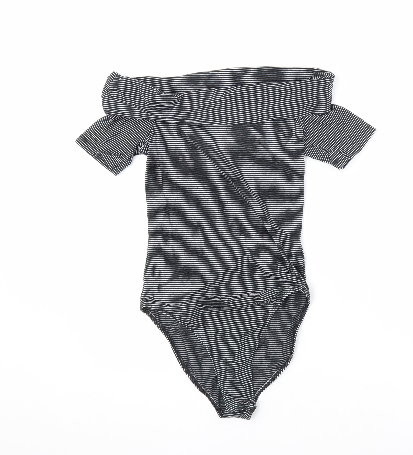 Miss Selfridge Womens Black Striped Cotton Bodysuit One-Piece Size 8 Snap