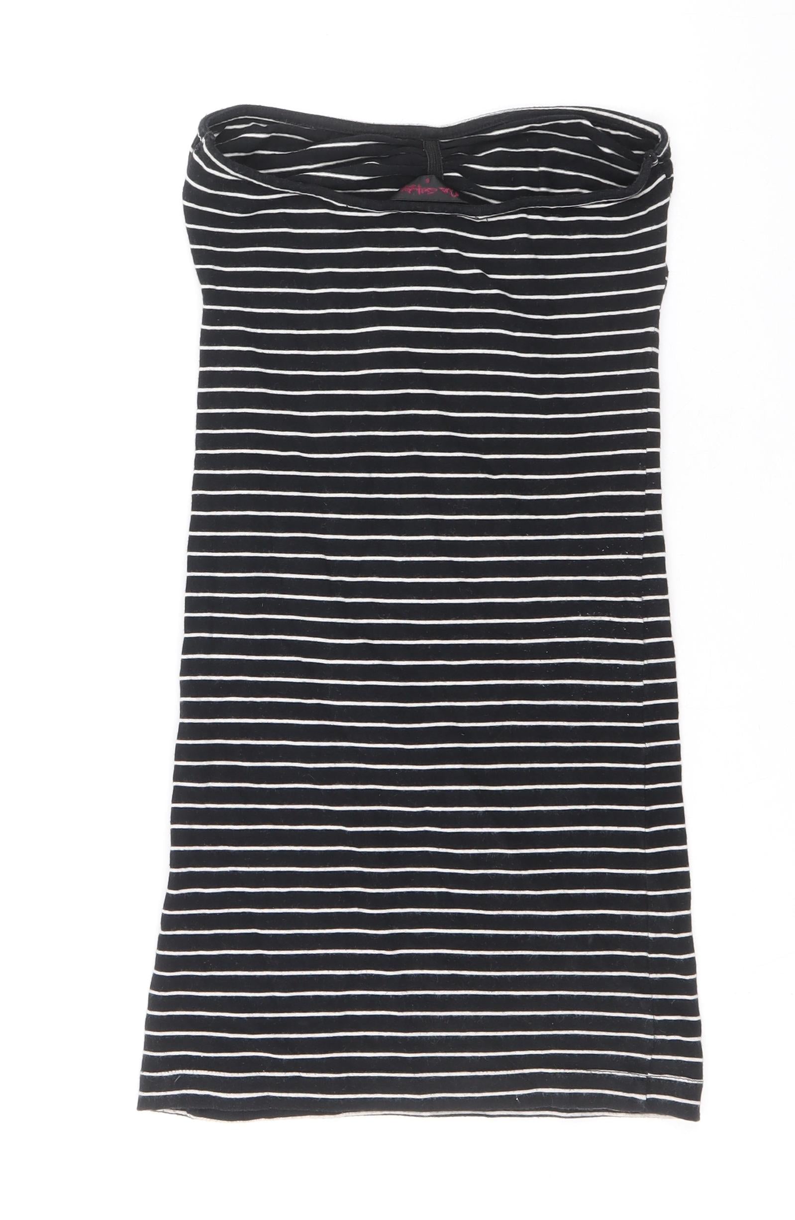 Miss Selfridge Womens Black Striped Cotton Tank Dress Size 8 Off the Shoulder Pullover