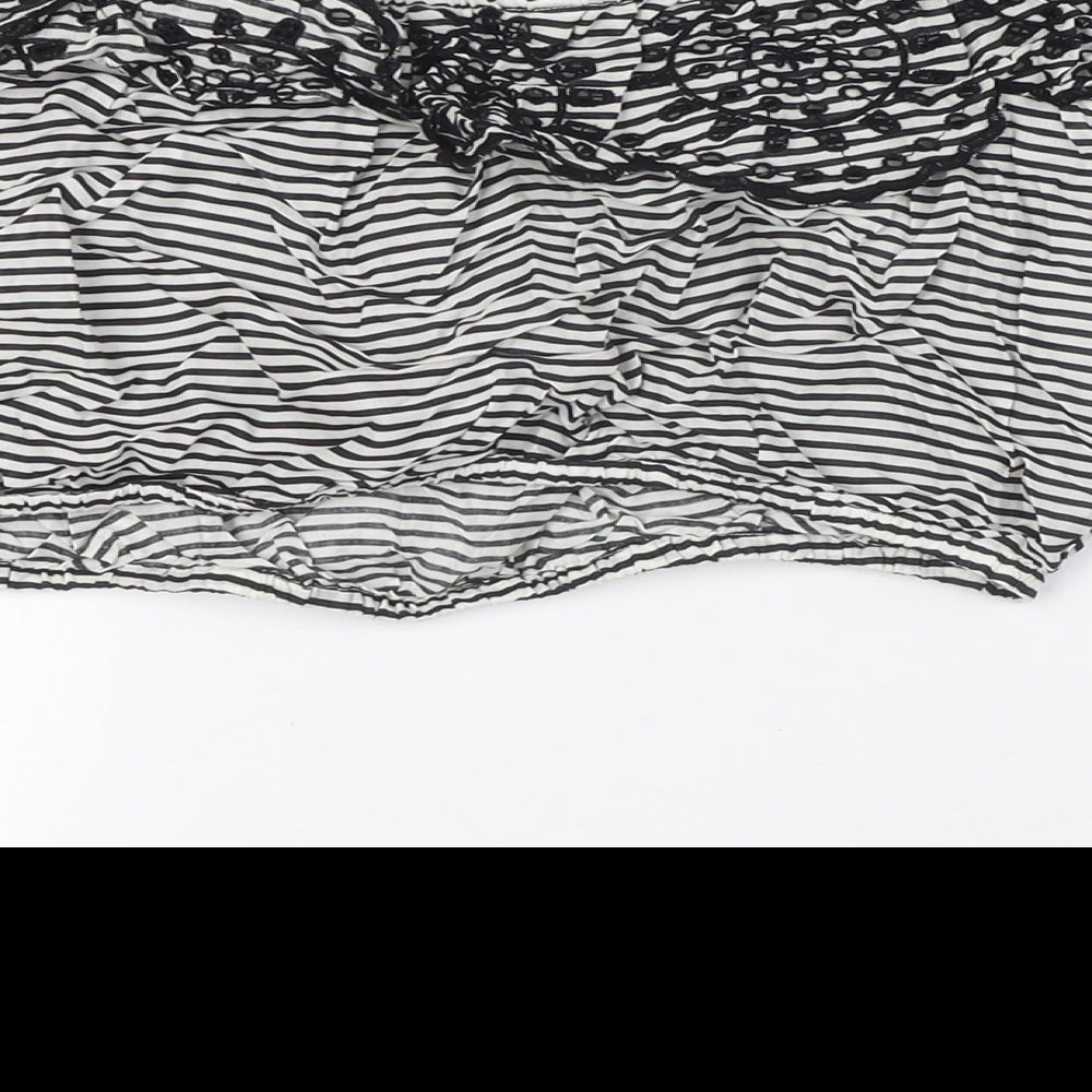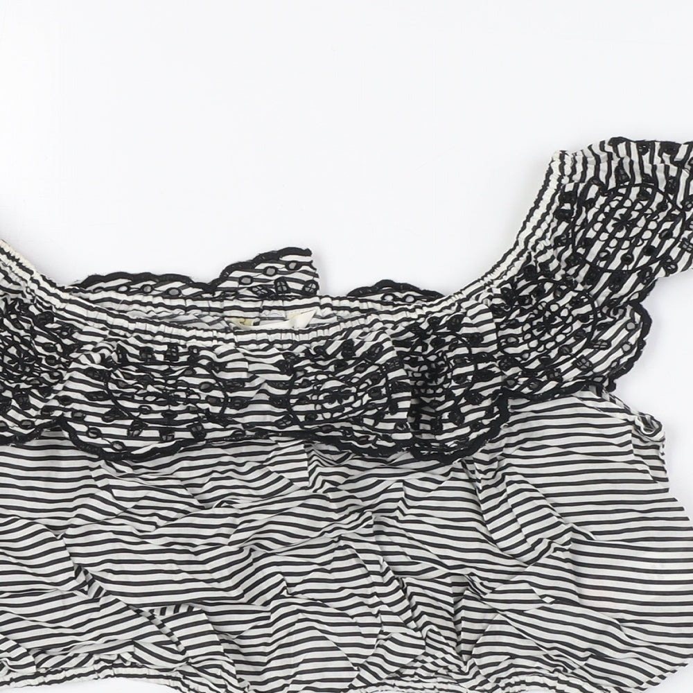 Miss Selfridge Womens Black Striped Polyester Cropped Blouse Size 12 Off the Shoulder - Embellished Collar