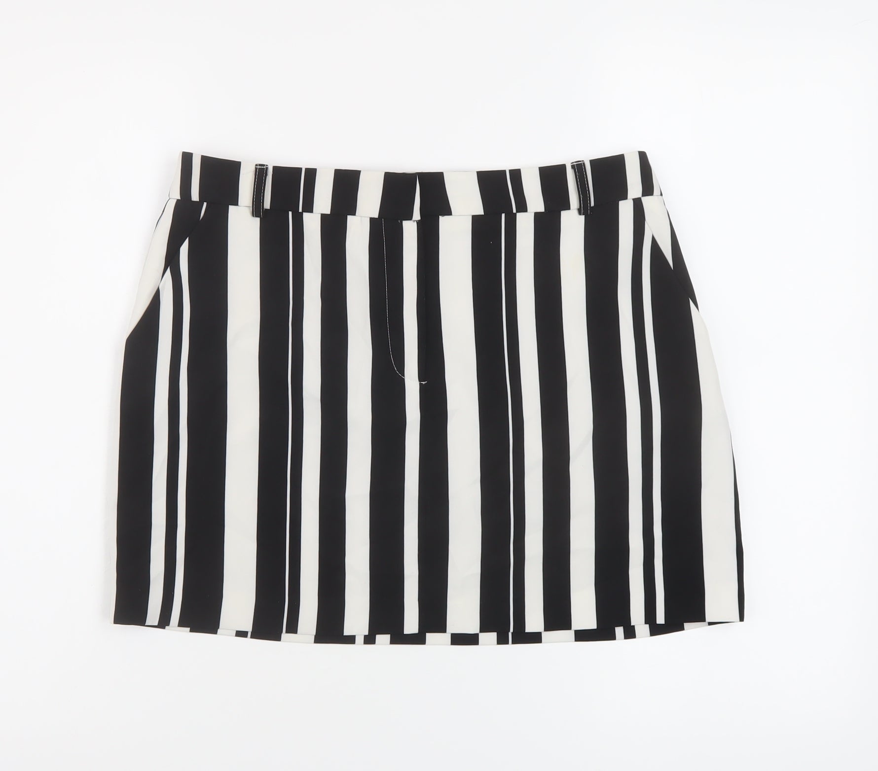 Miss Selfridge Womens Black Striped Polyester Mini Skirt Size 12 Zip