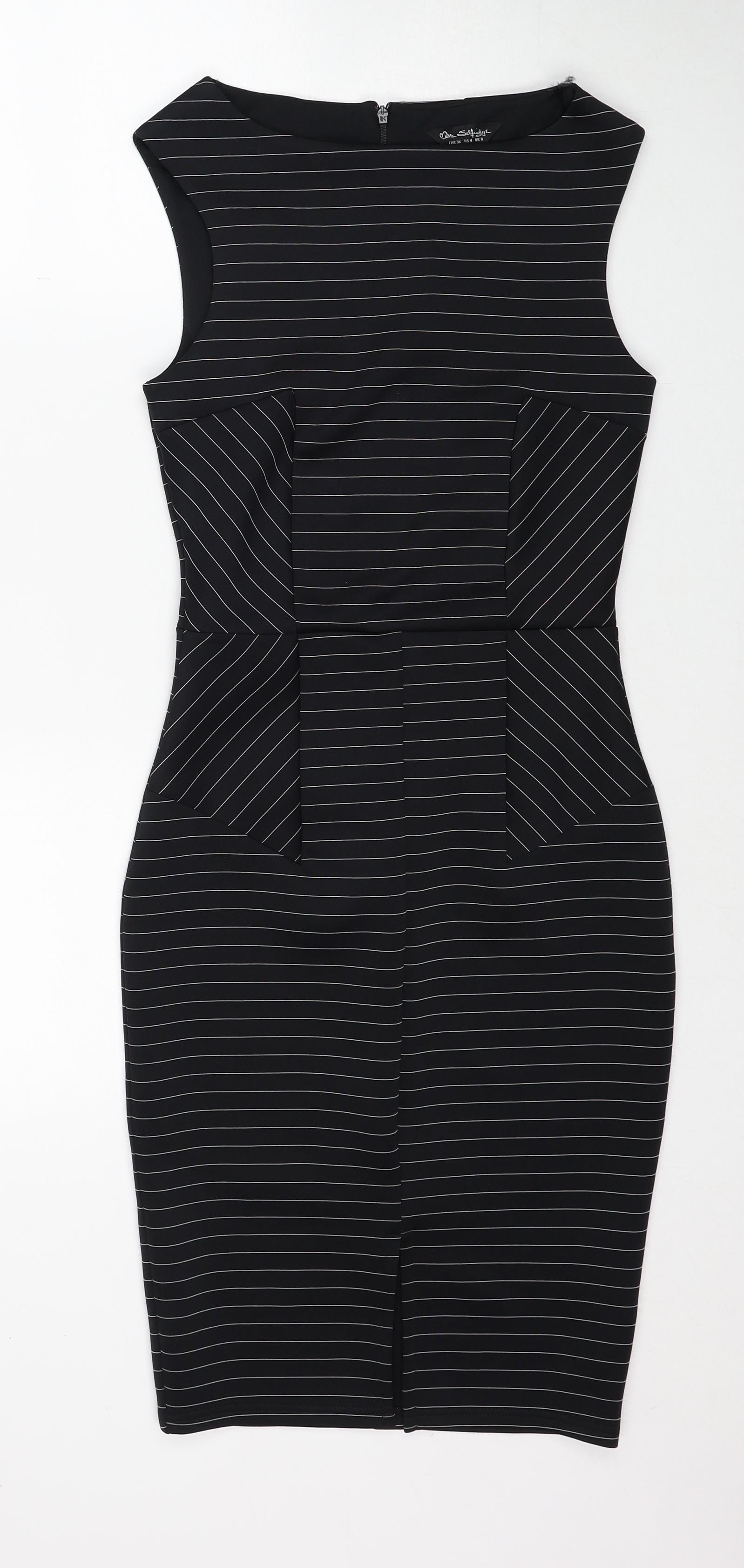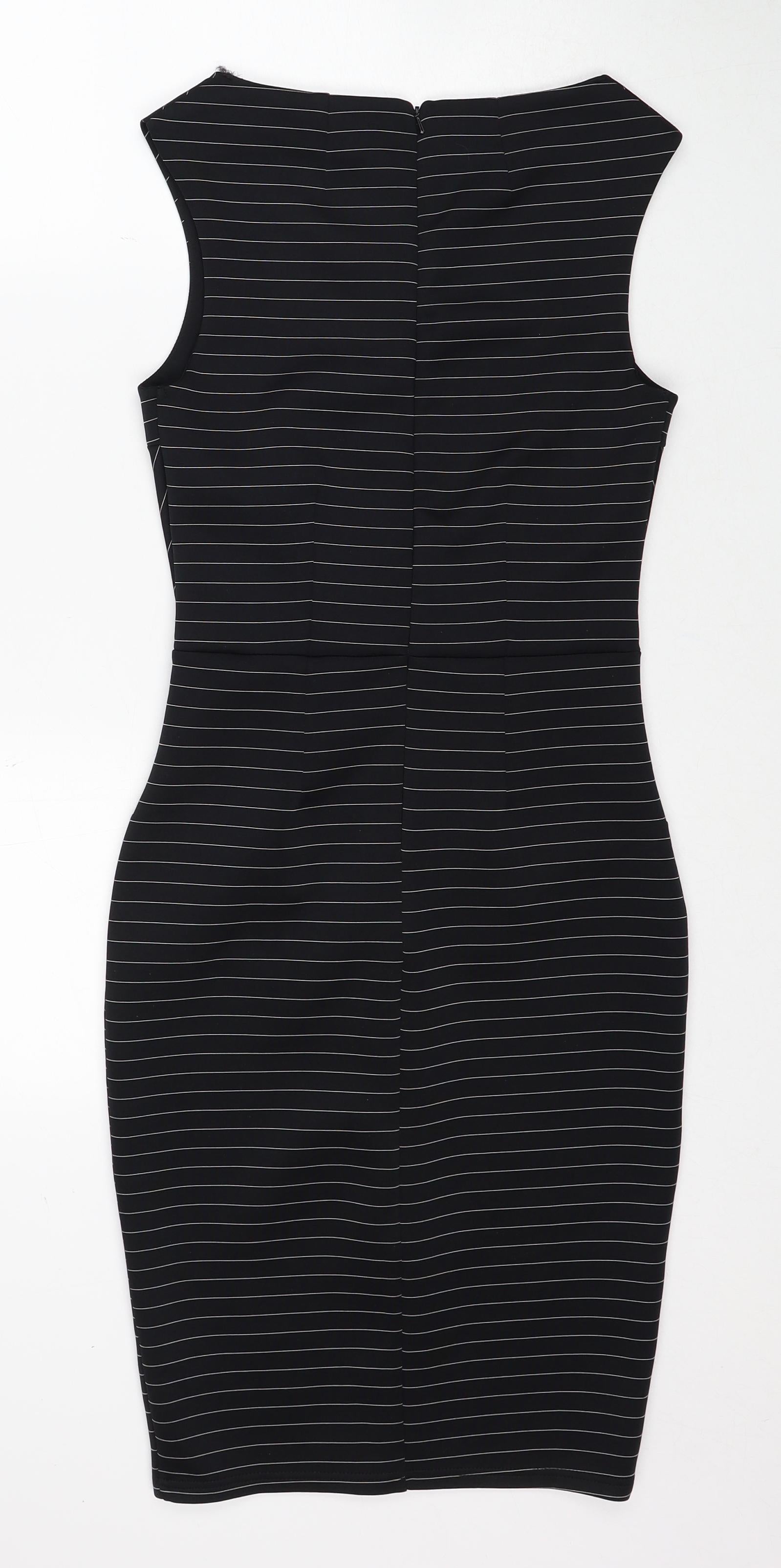 Miss Selfridge Womens Black Striped Polyester Shift Size 8 Round Neck Zip