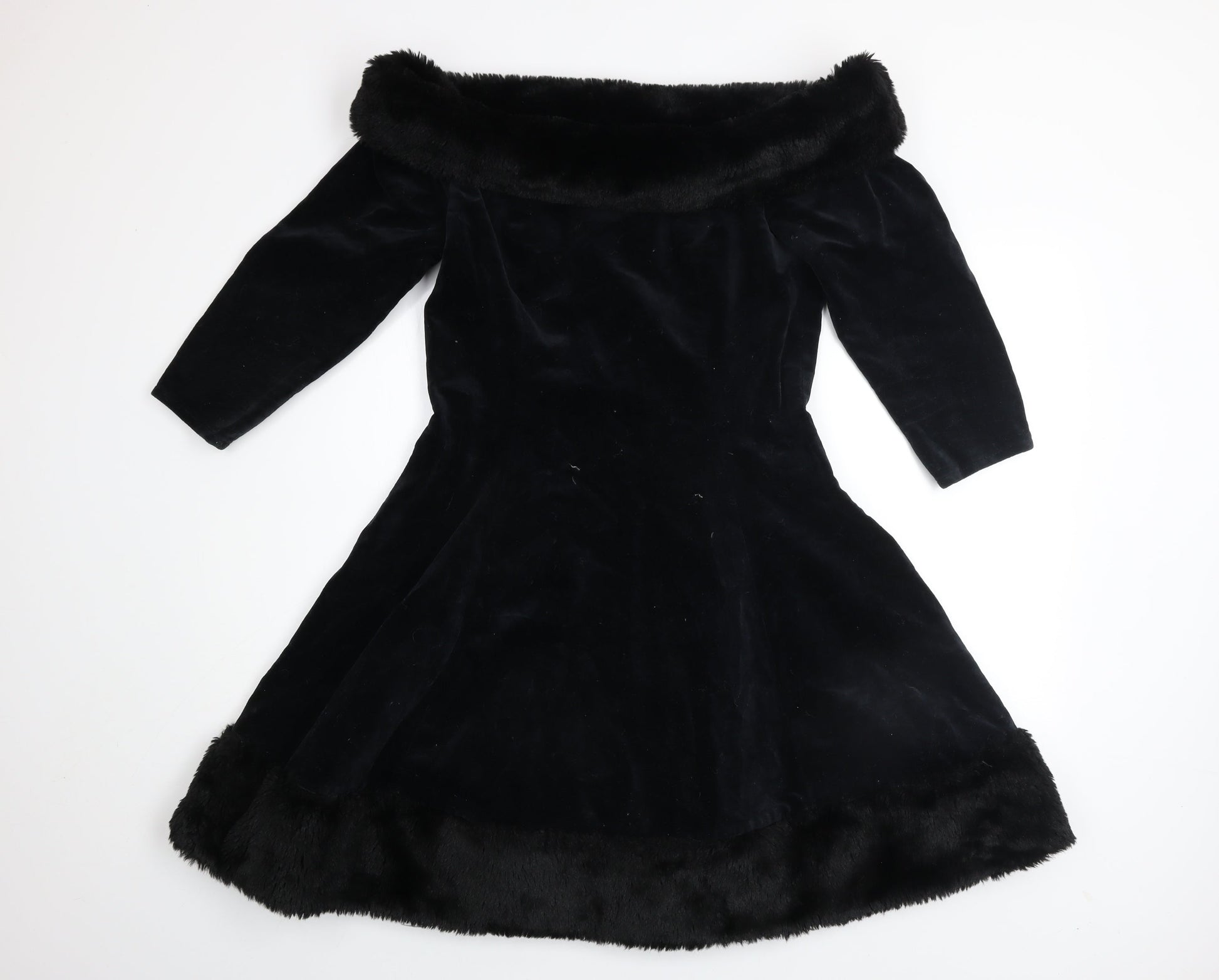 Miss Selfridge Women's Black Velvet Off Shoulder Dress Size 14