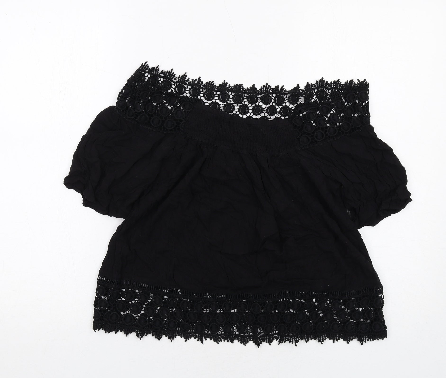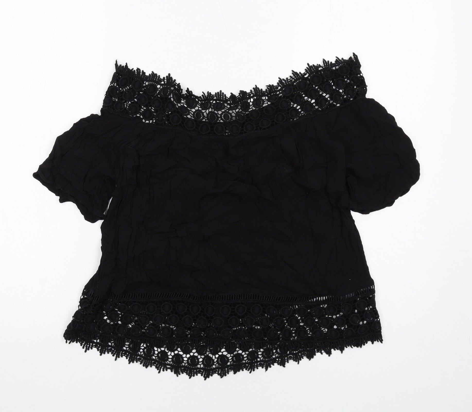 Miss Selfridge Womens Black Viscose Basic Blouse Size 10 Off the Shoulder - Crocheted Lace Trim