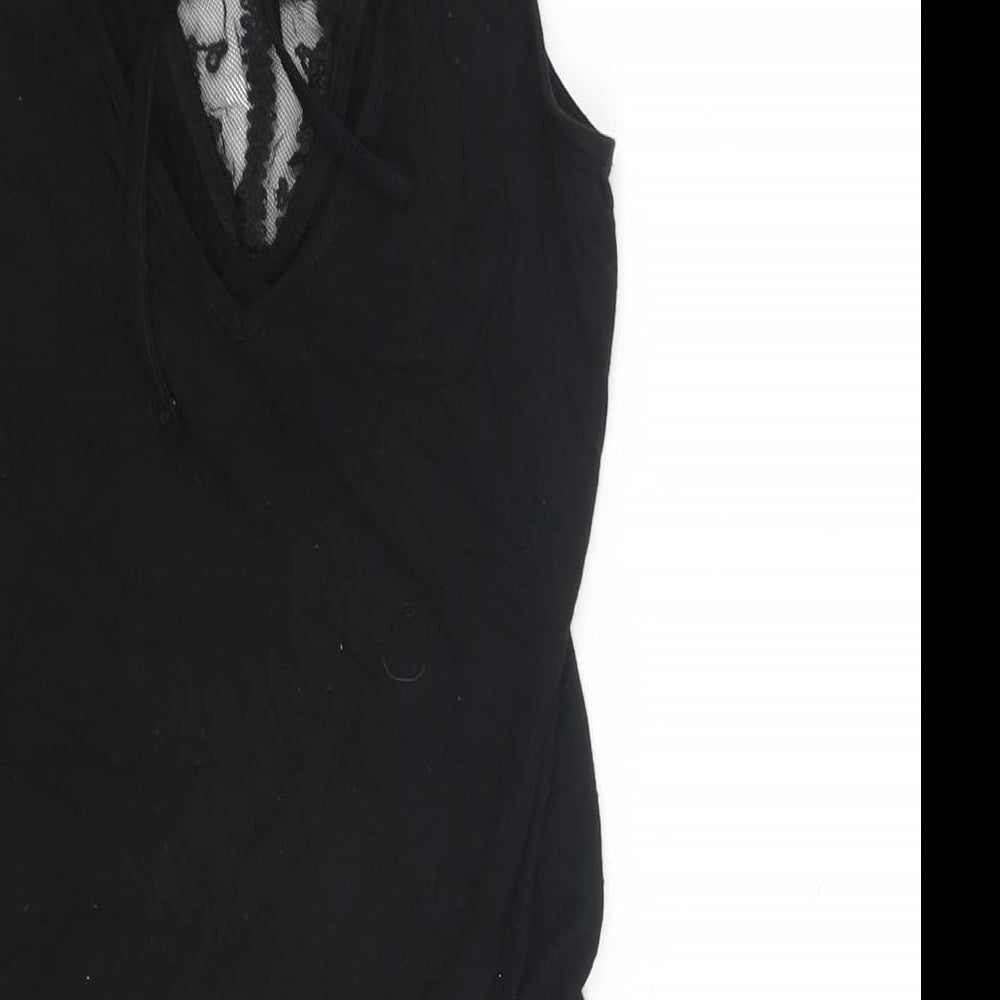 Miss Selfridge Womens Black Viscose Bodysuit One-Piece Size 8 Tie - Mesh Detail Lace Trim Open Back