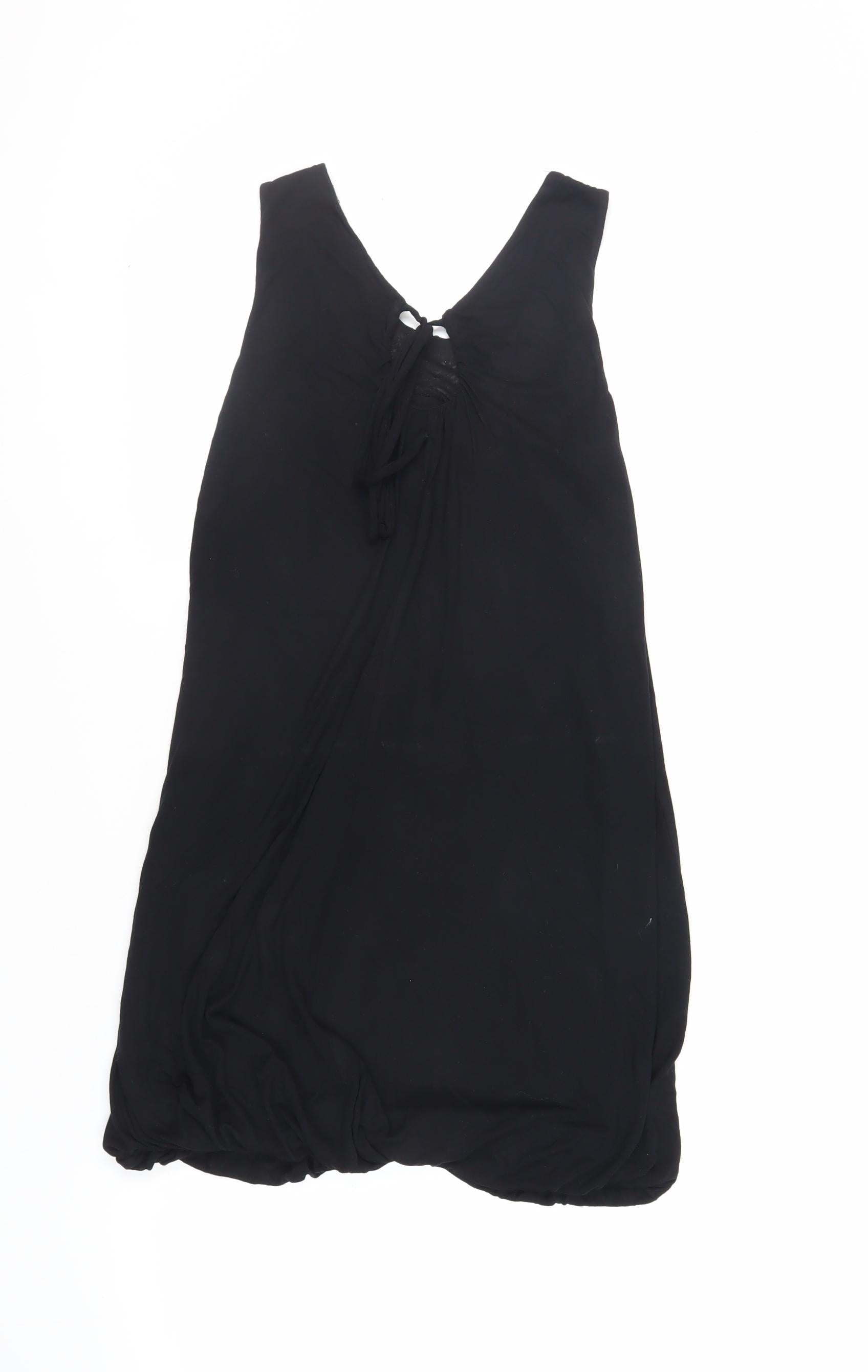 Miss Selfridge Womens Black Viscose Mini Size 8 Scoop Neck Tie - Bubble Hem