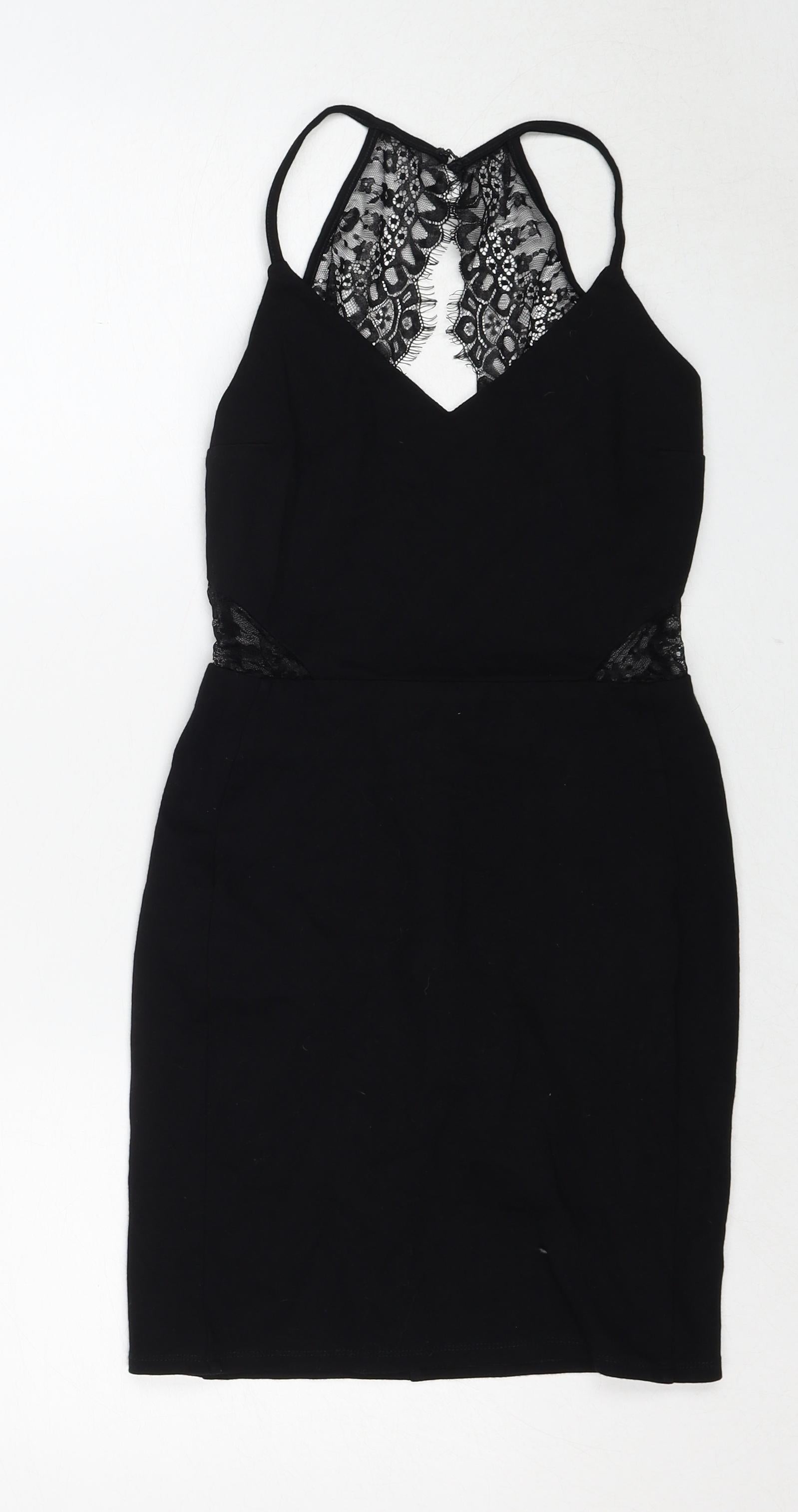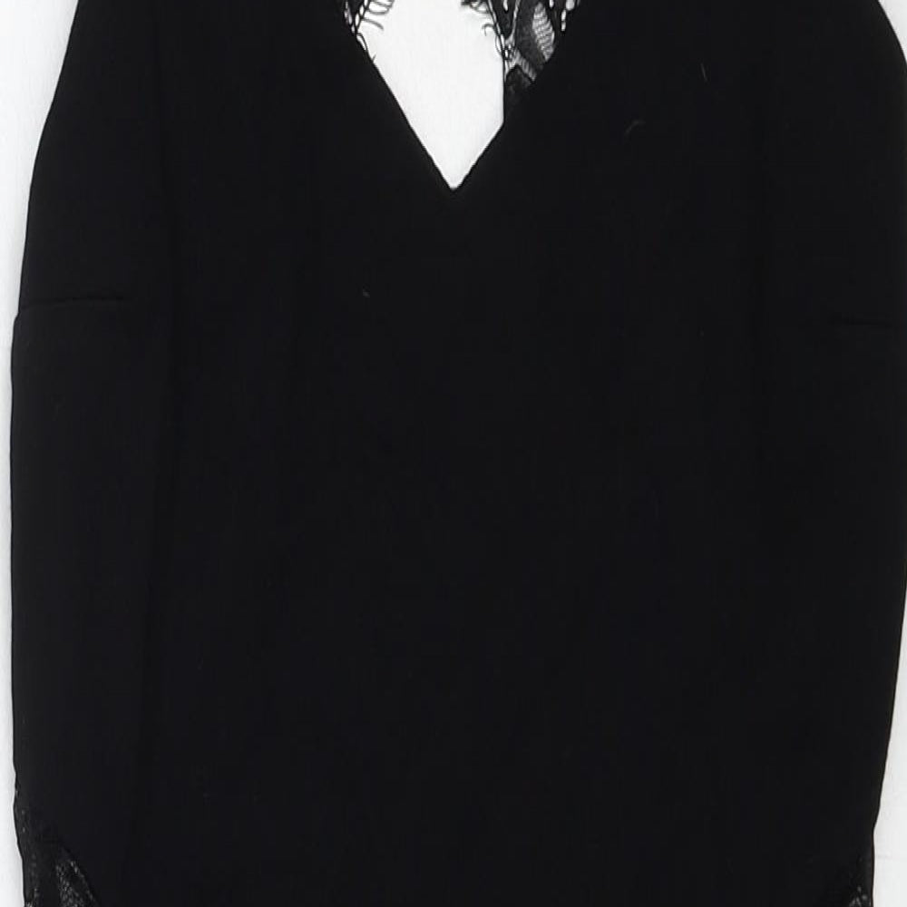 Miss Selfridge Womens Black Viscose Shift Size 8 V-Neck Zip - Lace Details