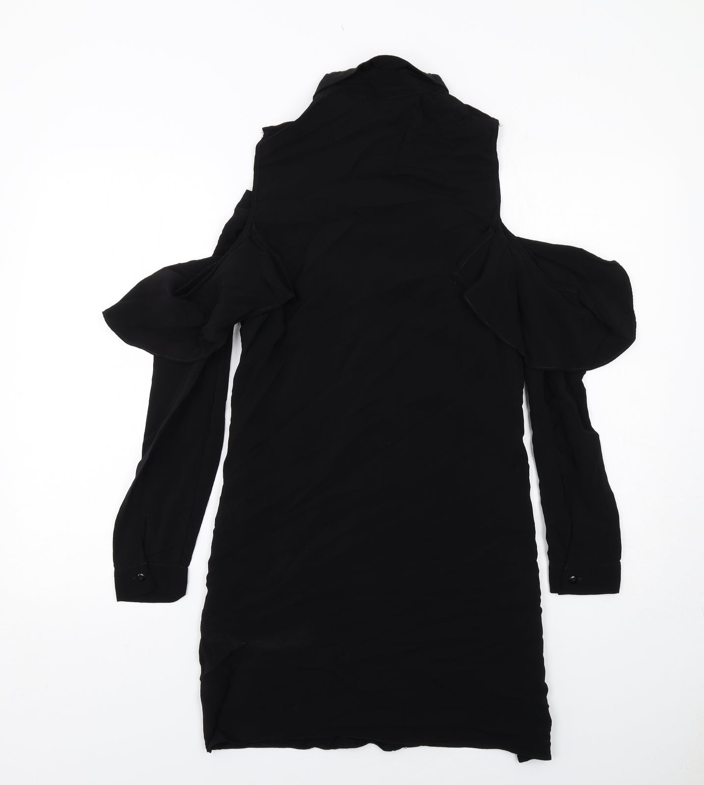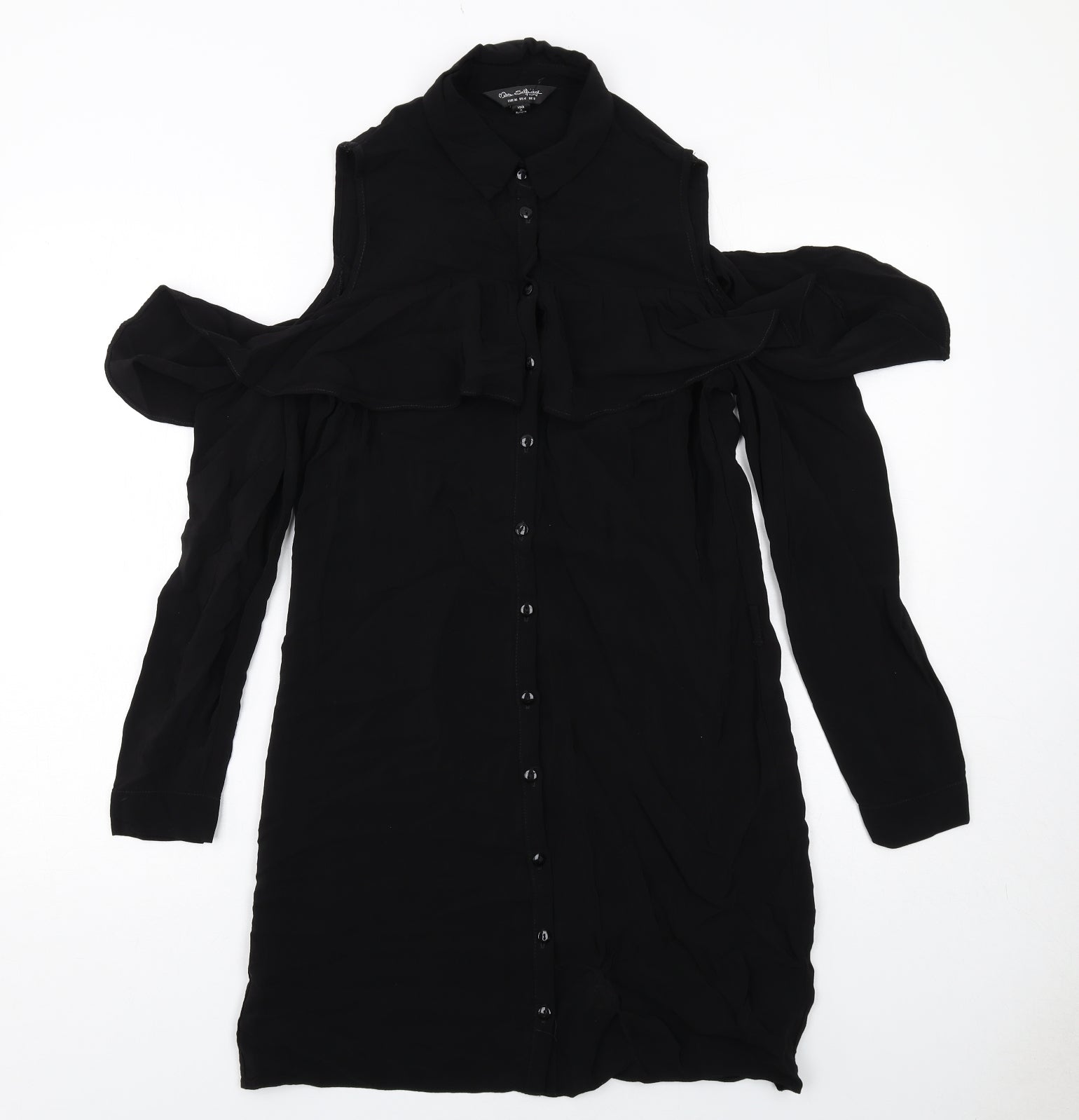 Miss Selfridge Womens Black Viscose Shirt Dress Size 8 Collared Button - Cold shoulder