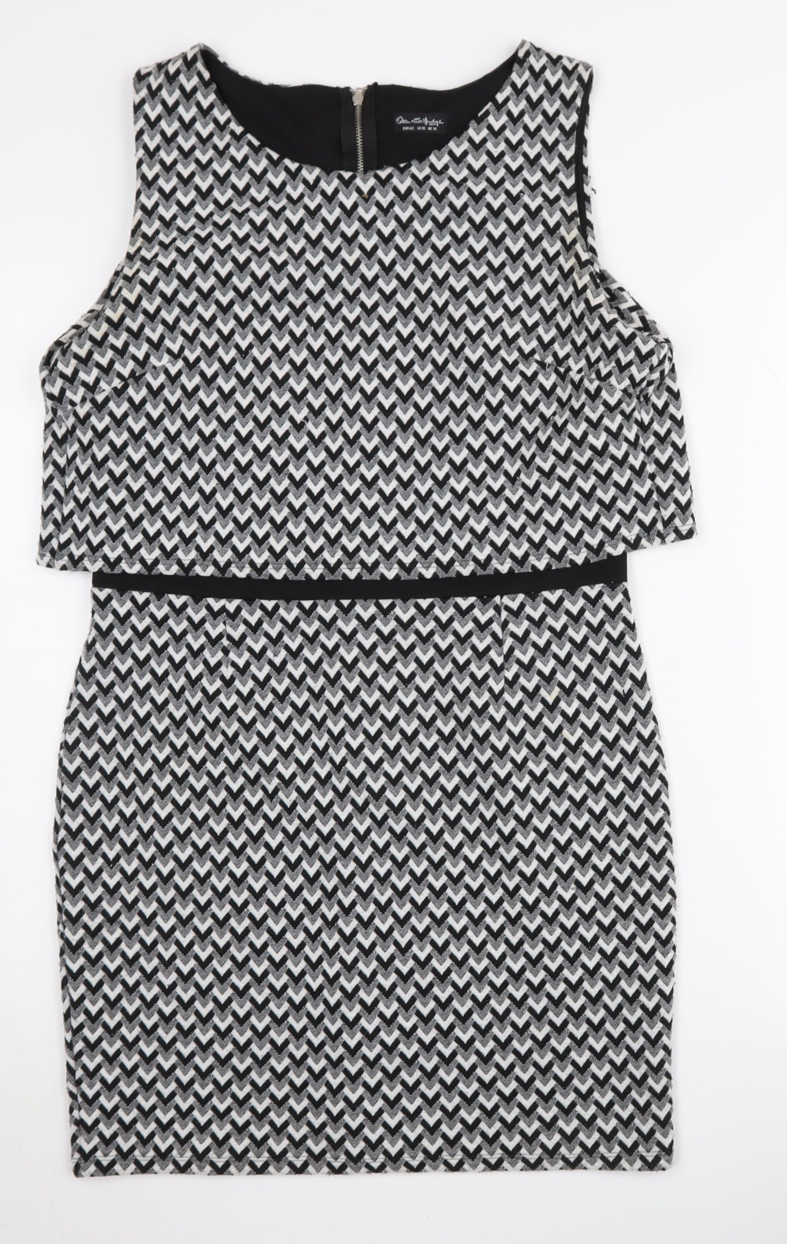 Miss Selfridge Women's Black & White Chevron Pencil Dress