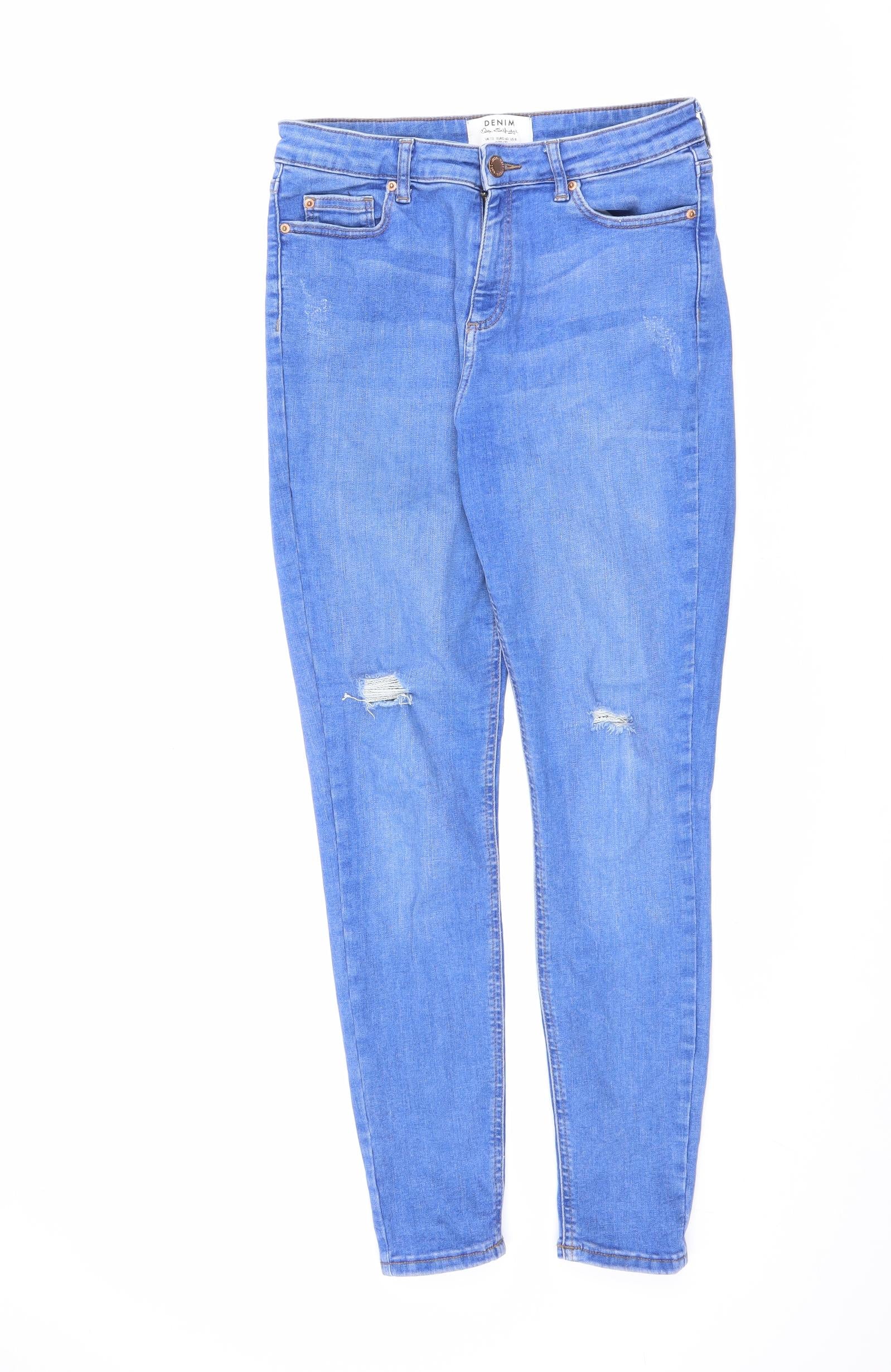 Miss Selfridge Womens Blue Cotton Skinny Jeans Size 12 L27 in Regular Zip