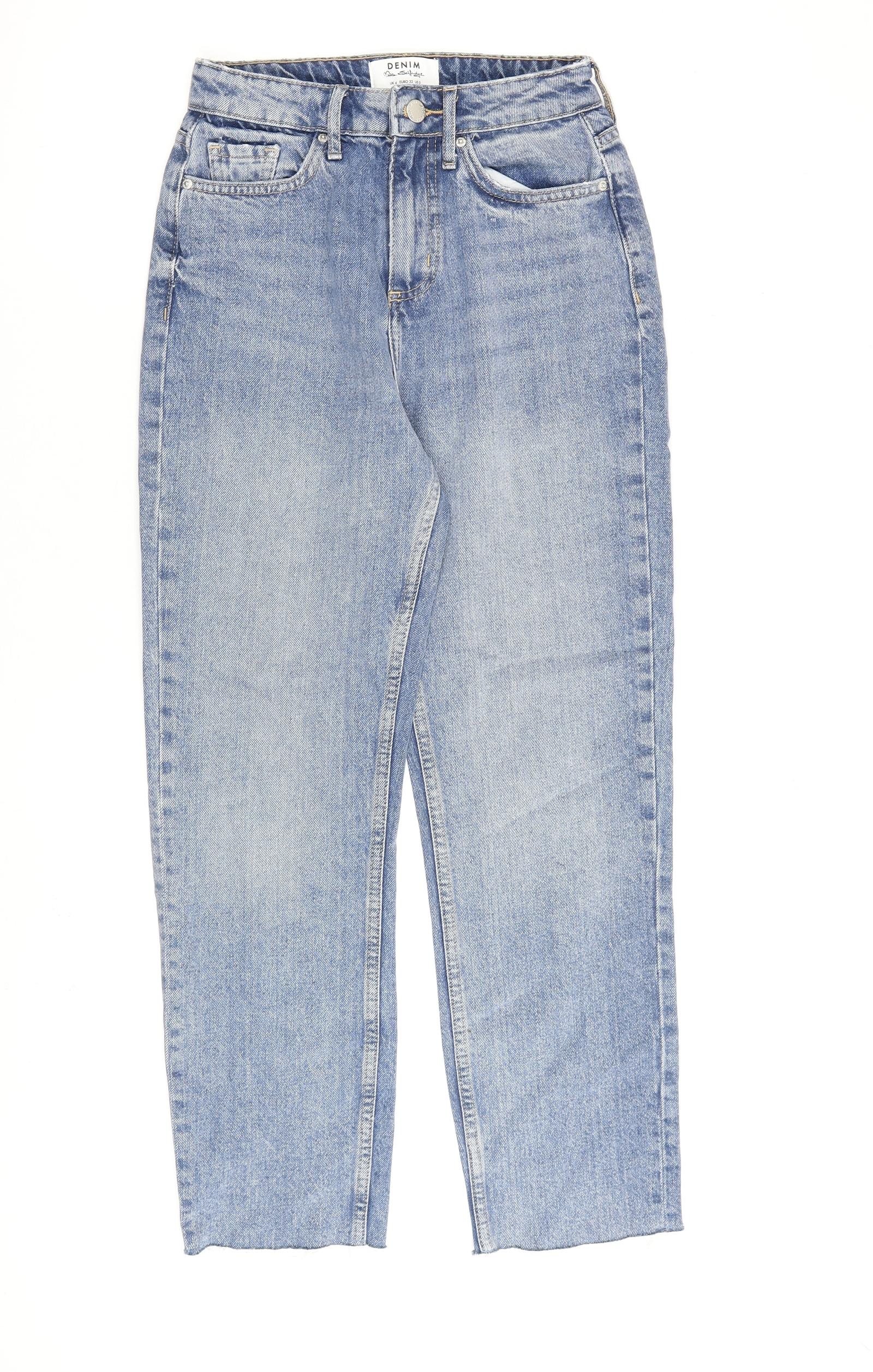 Miss Selfridge Womens Blue Cotton Straight Jeans Size 4 L26 in Regular Zip